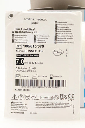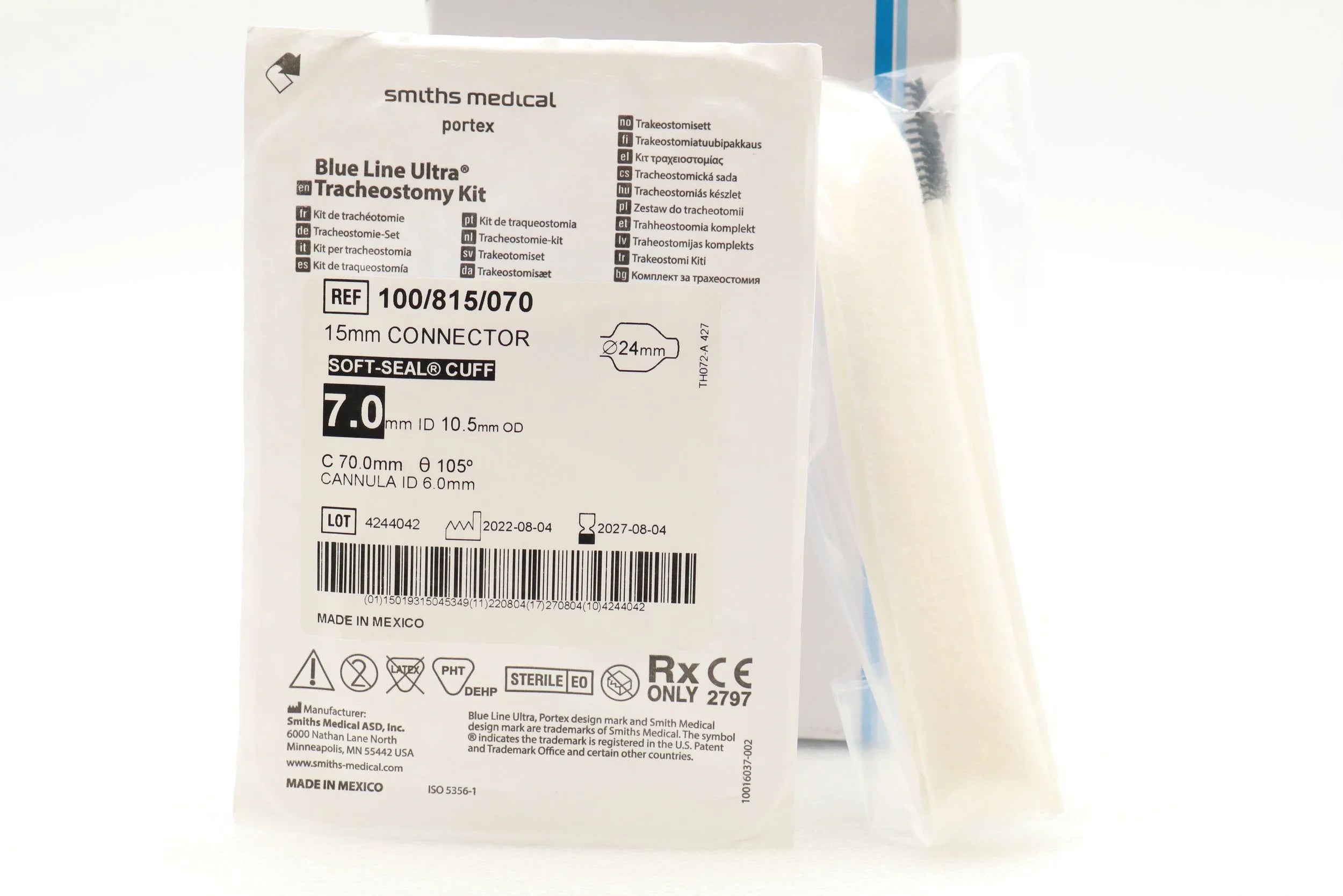 Smiths Medical | 100/815/070 | IN-DATE | BOX OF 1 | Portex Blue Line Ultra cuffed Tracheostomy Tube 7.0 mm