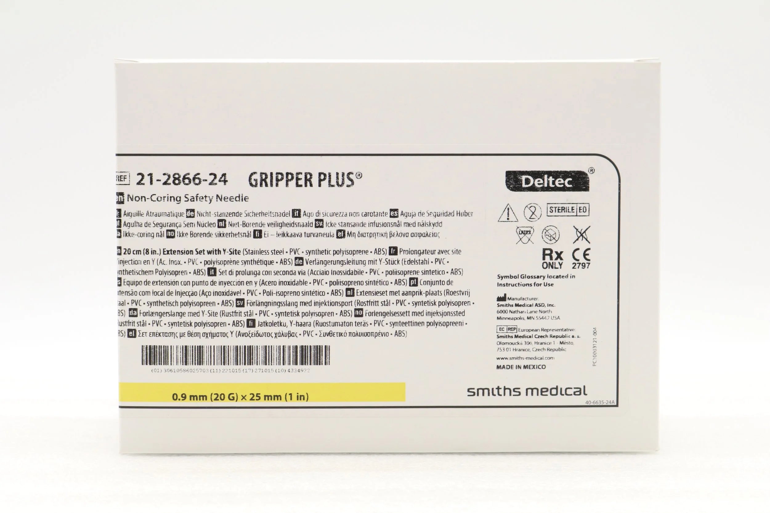 SMITHS MEDICAL | IN-DATE | 21-2866-24 | BOX OF 12 | Gripper Plus Non-Coring Safety Needle, 0.9mm x 25mm