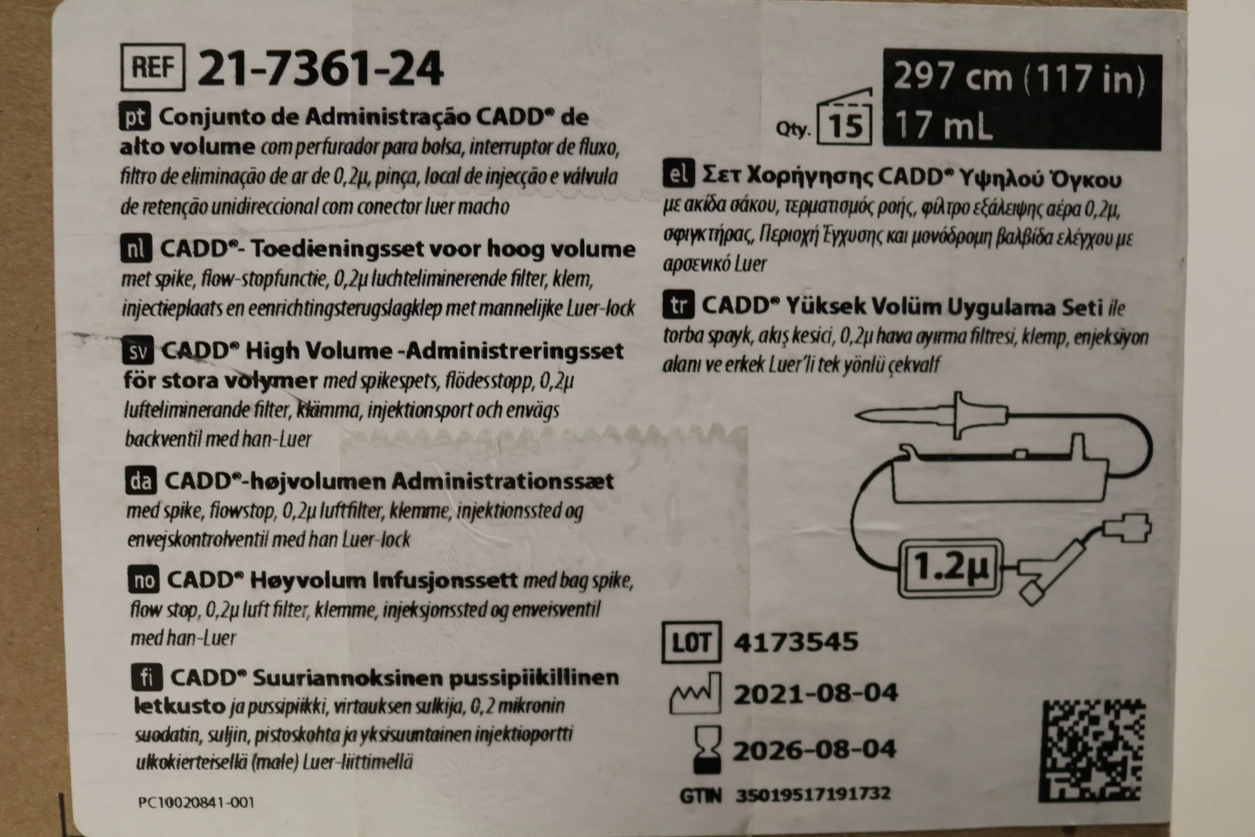 Smiths Medical | 21-7361-24 | IN-DATE | Box of 15 | CADD High Volume Administration Set