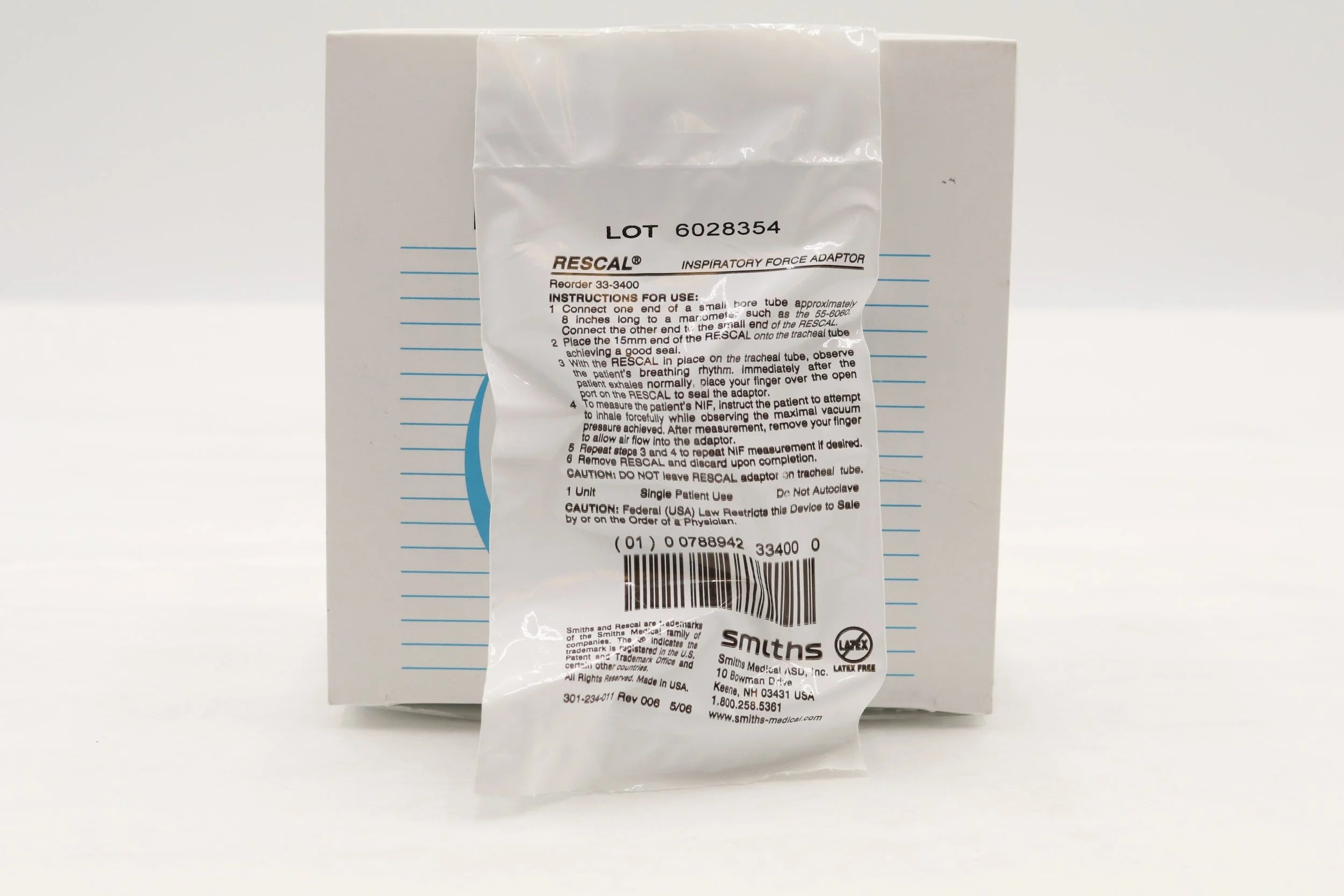 Smiths Medical | 33-3400 | IN-DATE | BOX OF 25 | Rescal Inspiratory Force Adapter, 15 mm
