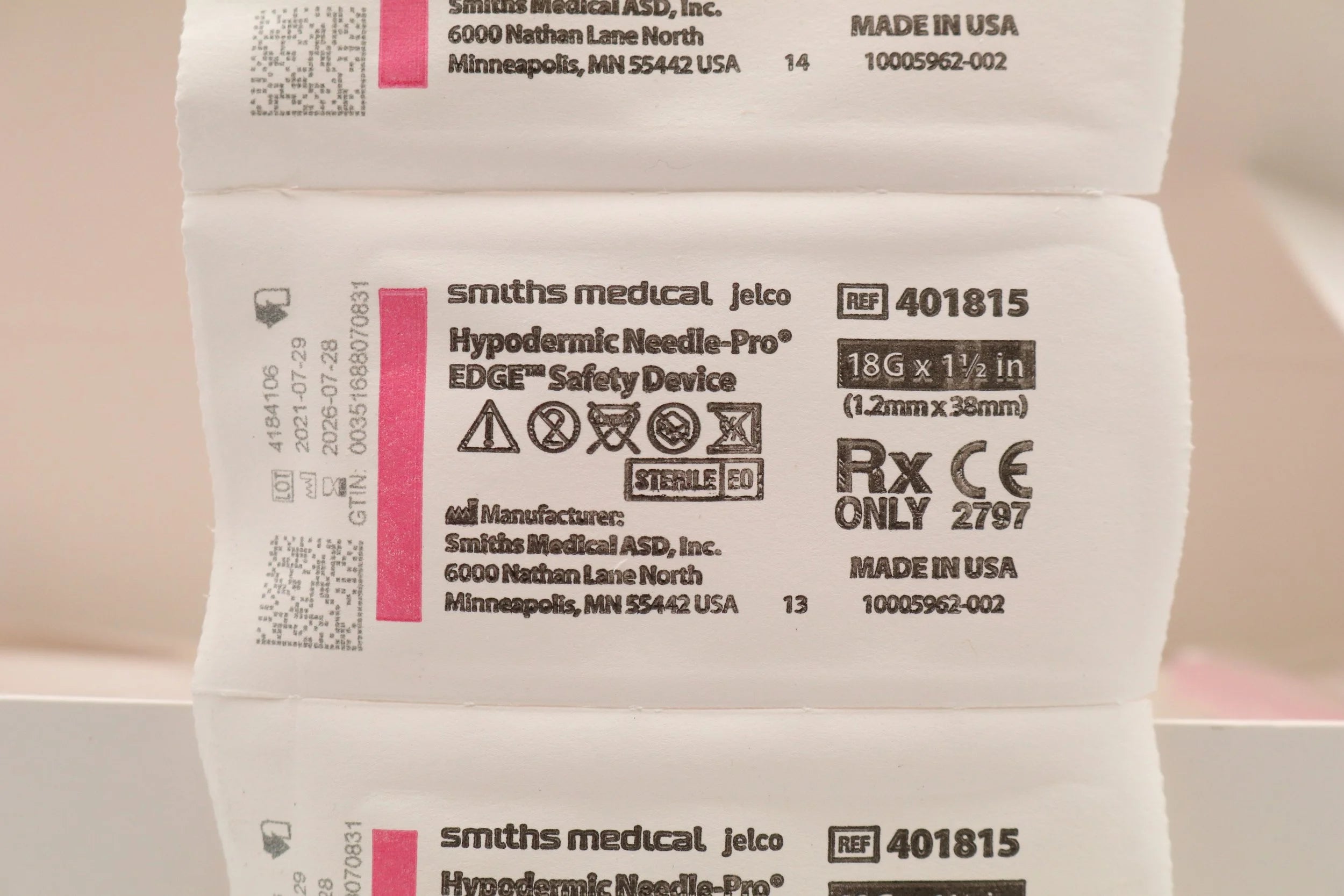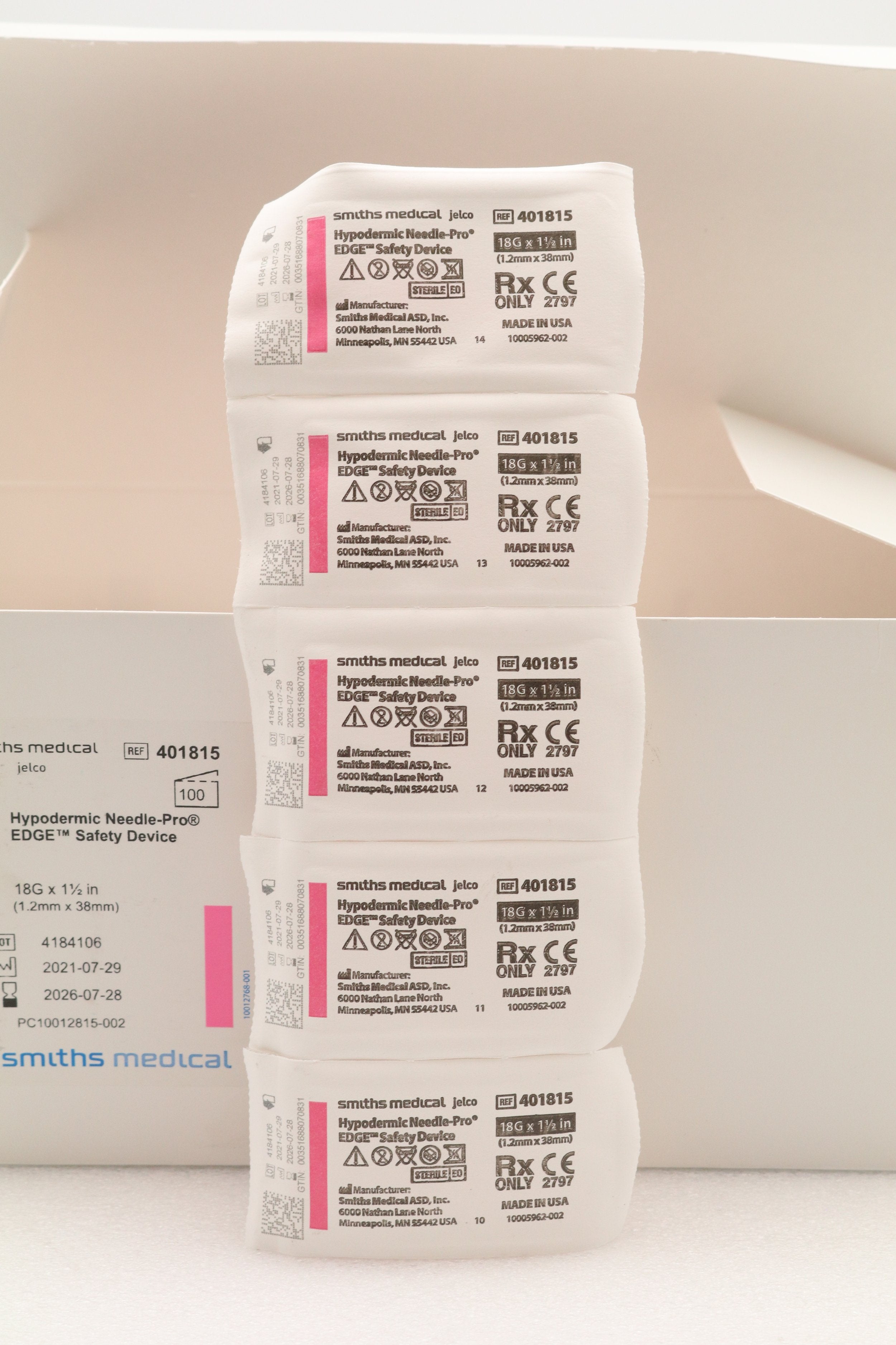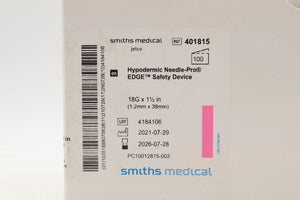 Smiths Medical | 401815 | IN-DATE | BOX OF 100 | NEEDLE, HYPODERMIC, PRO-EDGE, 18G X 1.5"