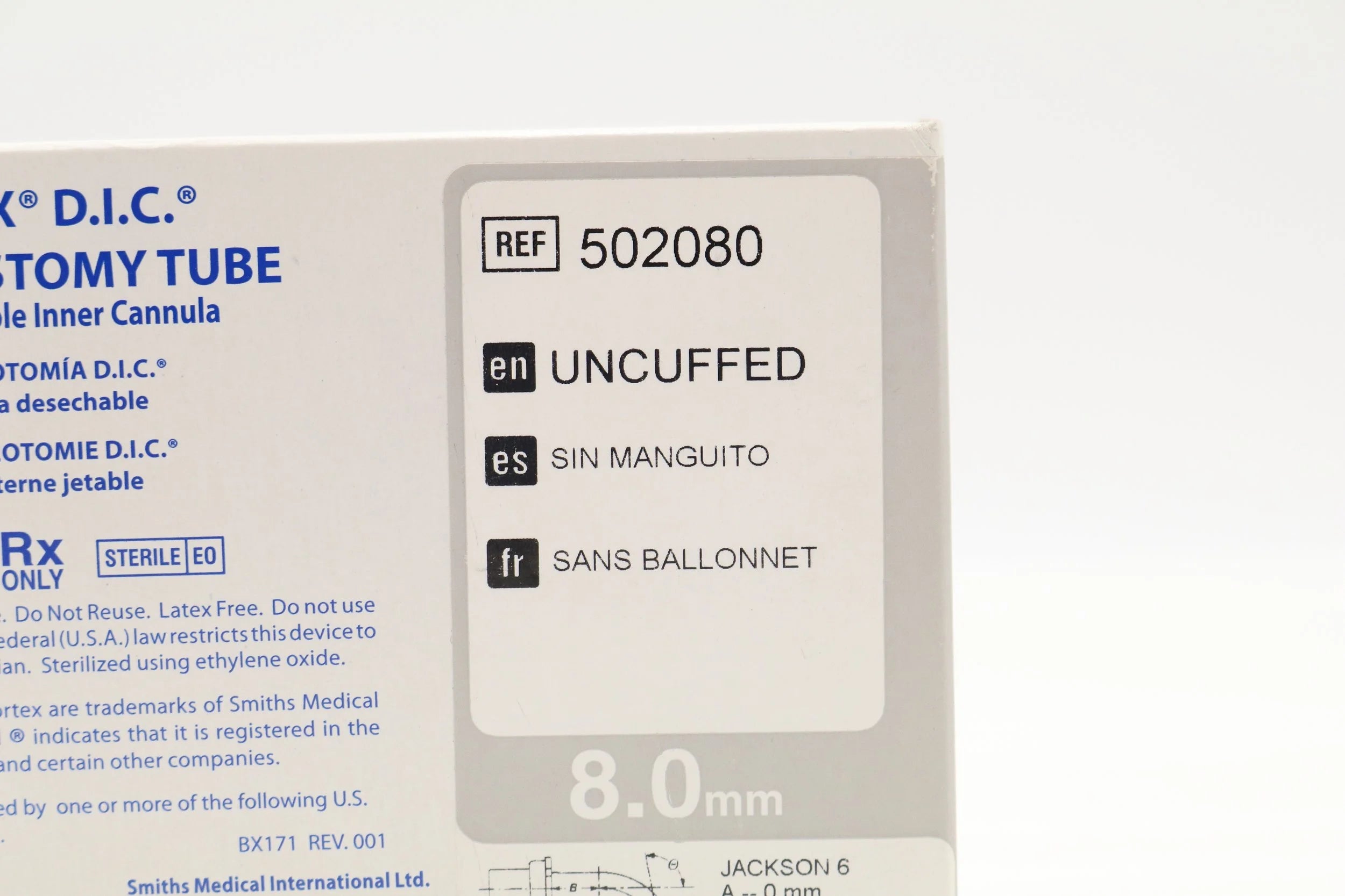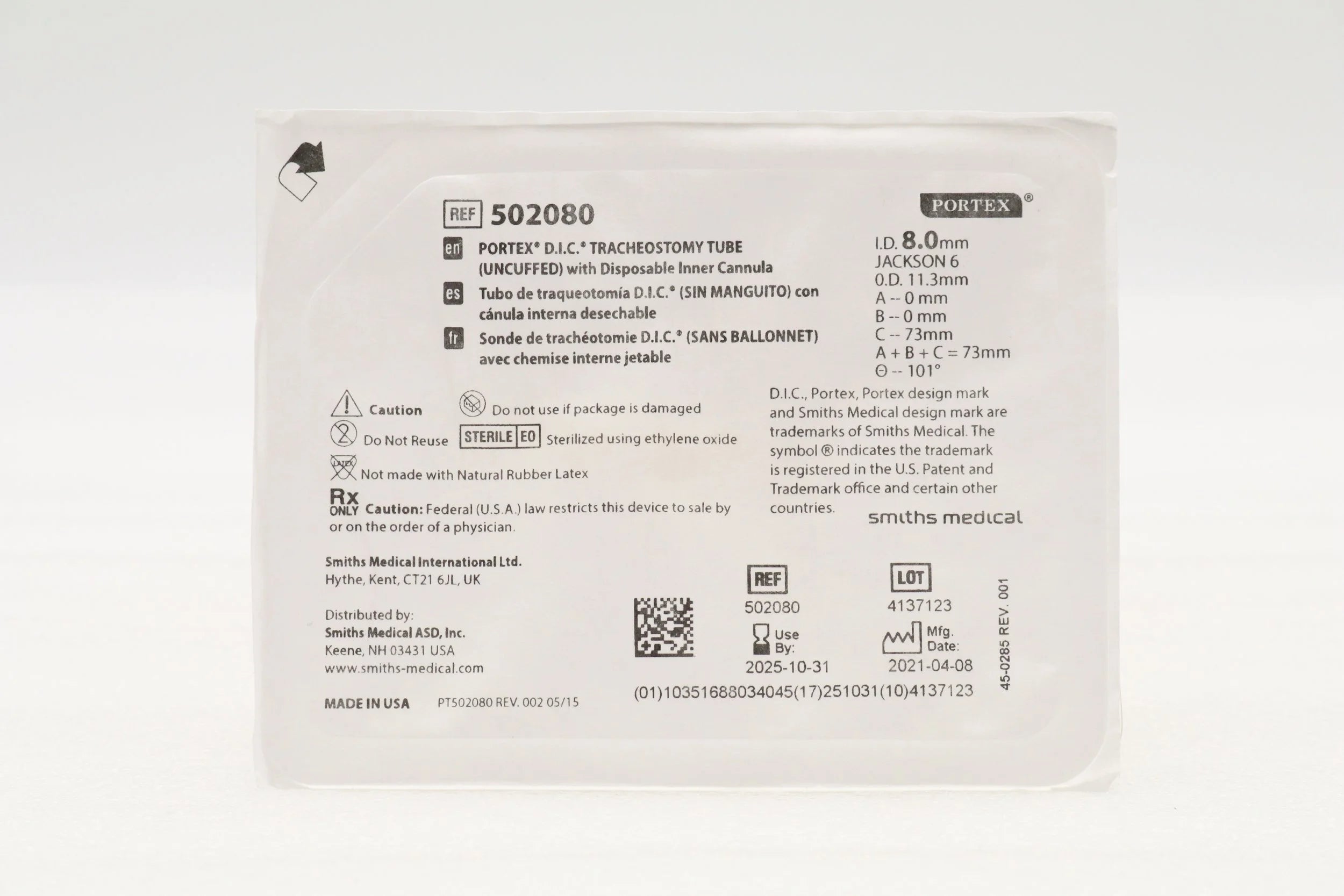 Smiths Medical | 502080 | PORTEX D.I.C. TRACHEOSTOMY TUBE, UNCUFFED 8MM