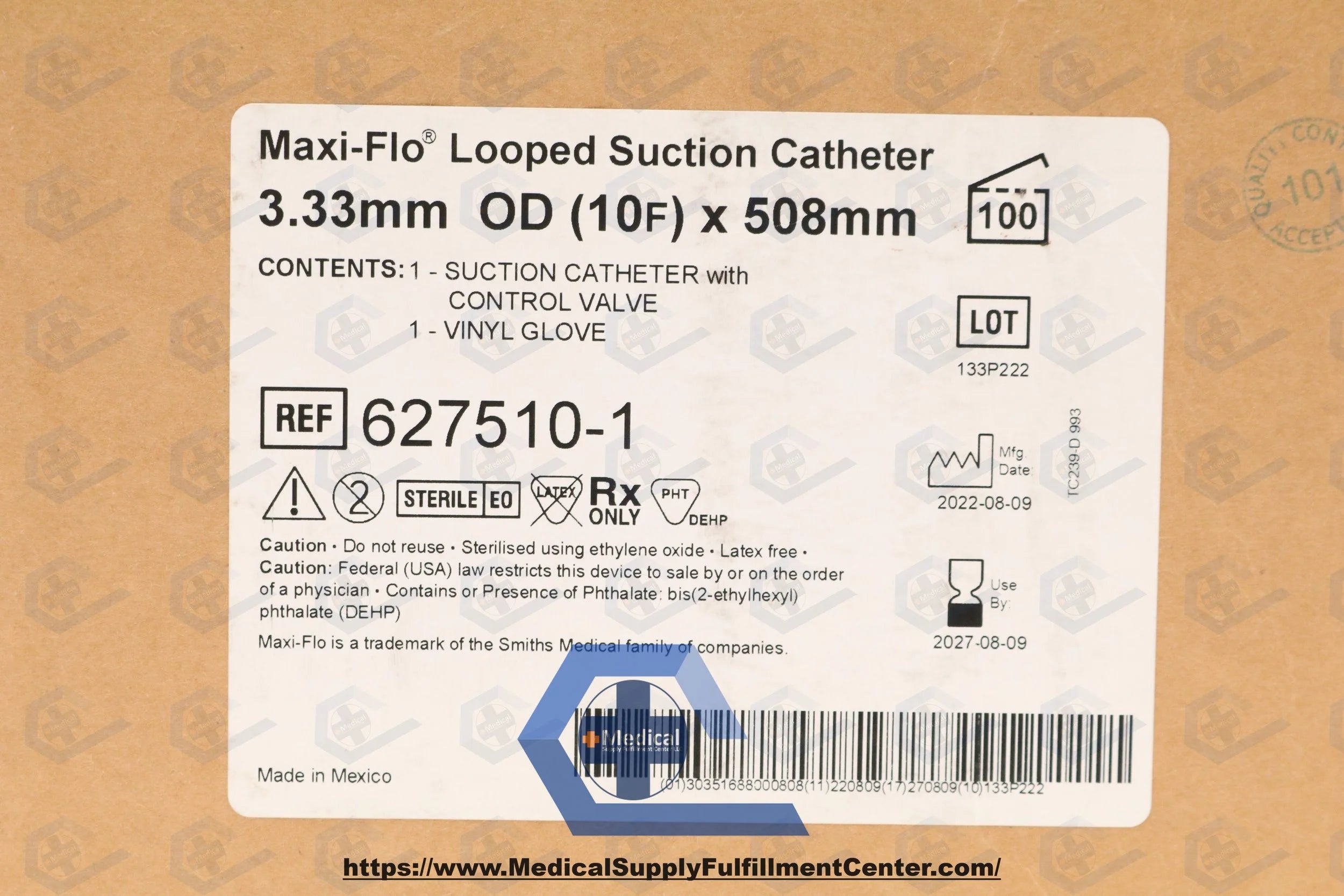 Smiths Medical | 627510-1 | IN-DATE | CASE OF 100 | Maxi-Flo Suction Catheter, 10fr