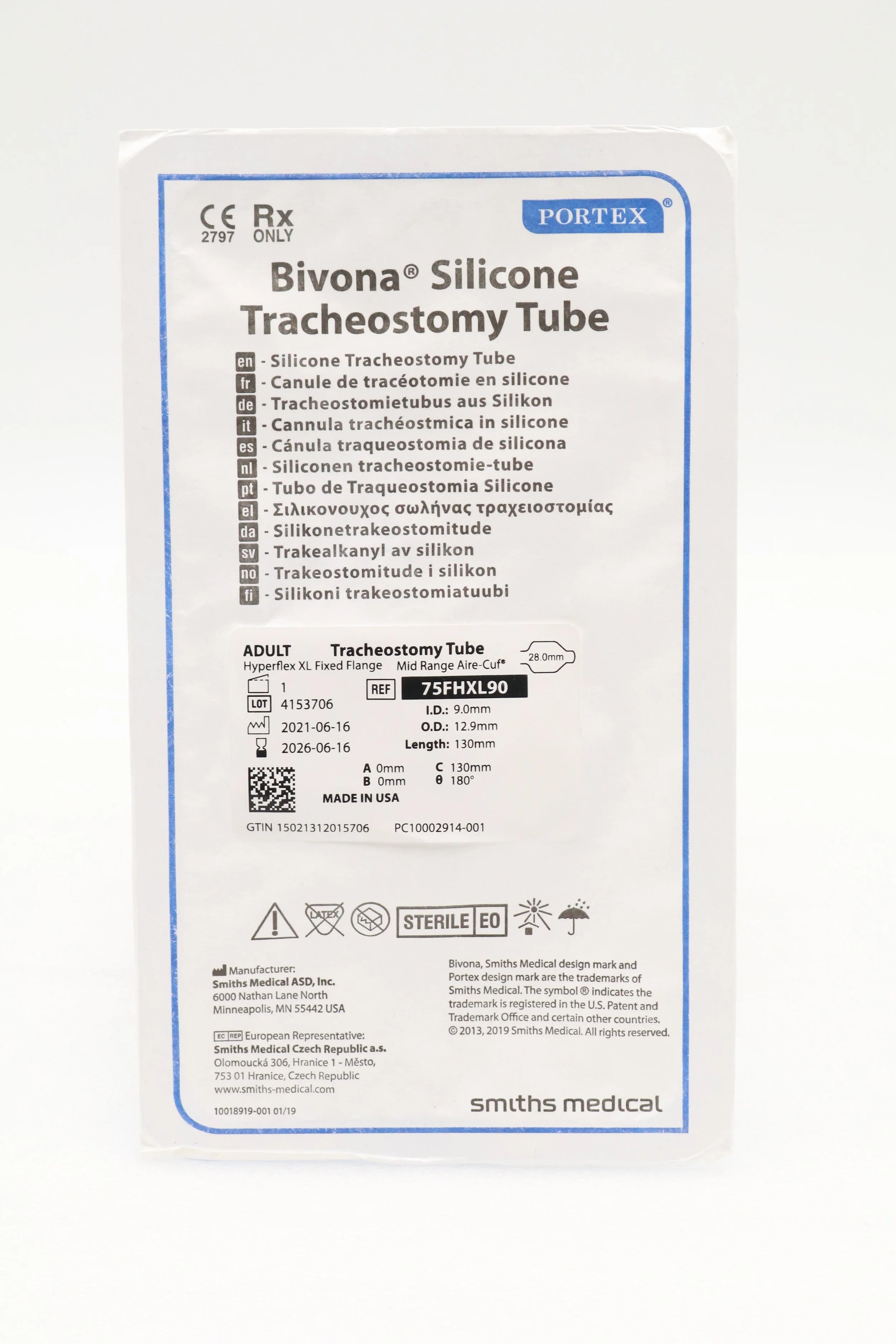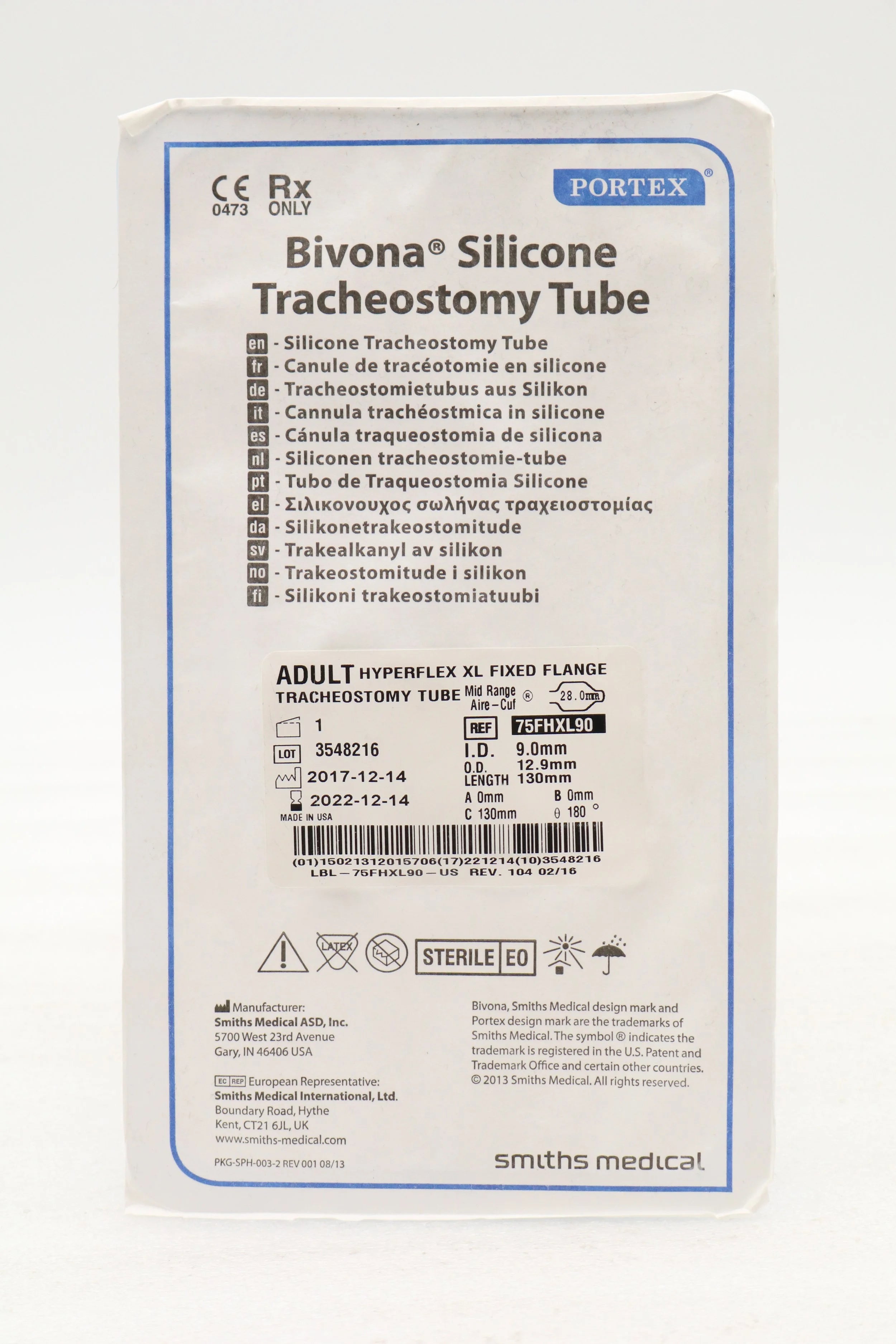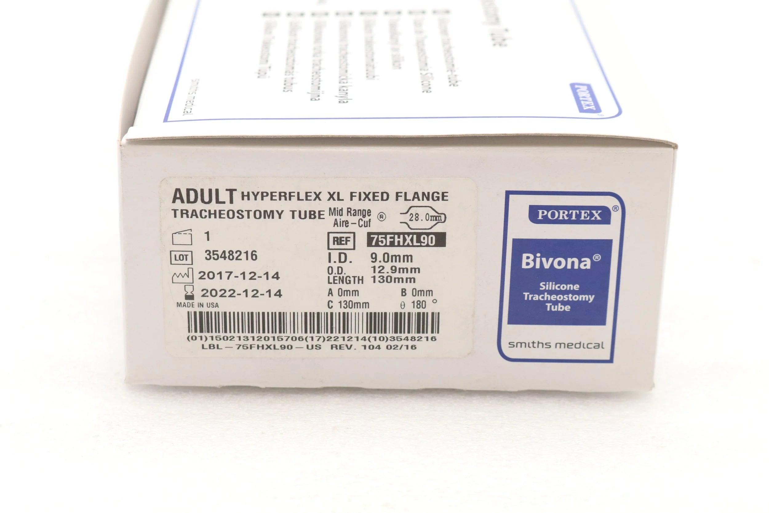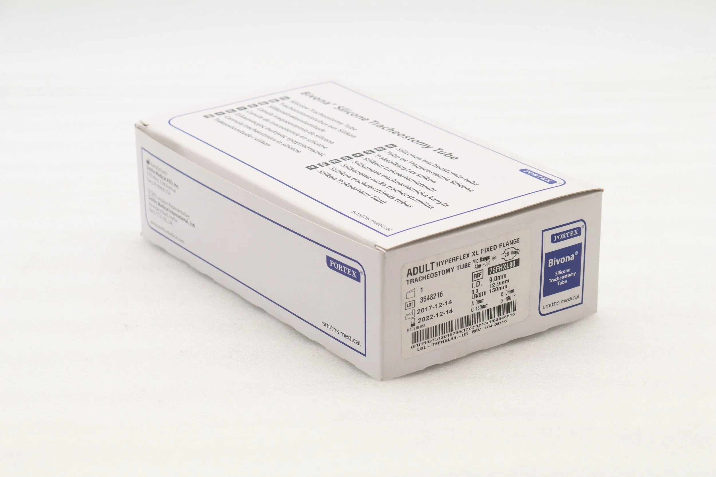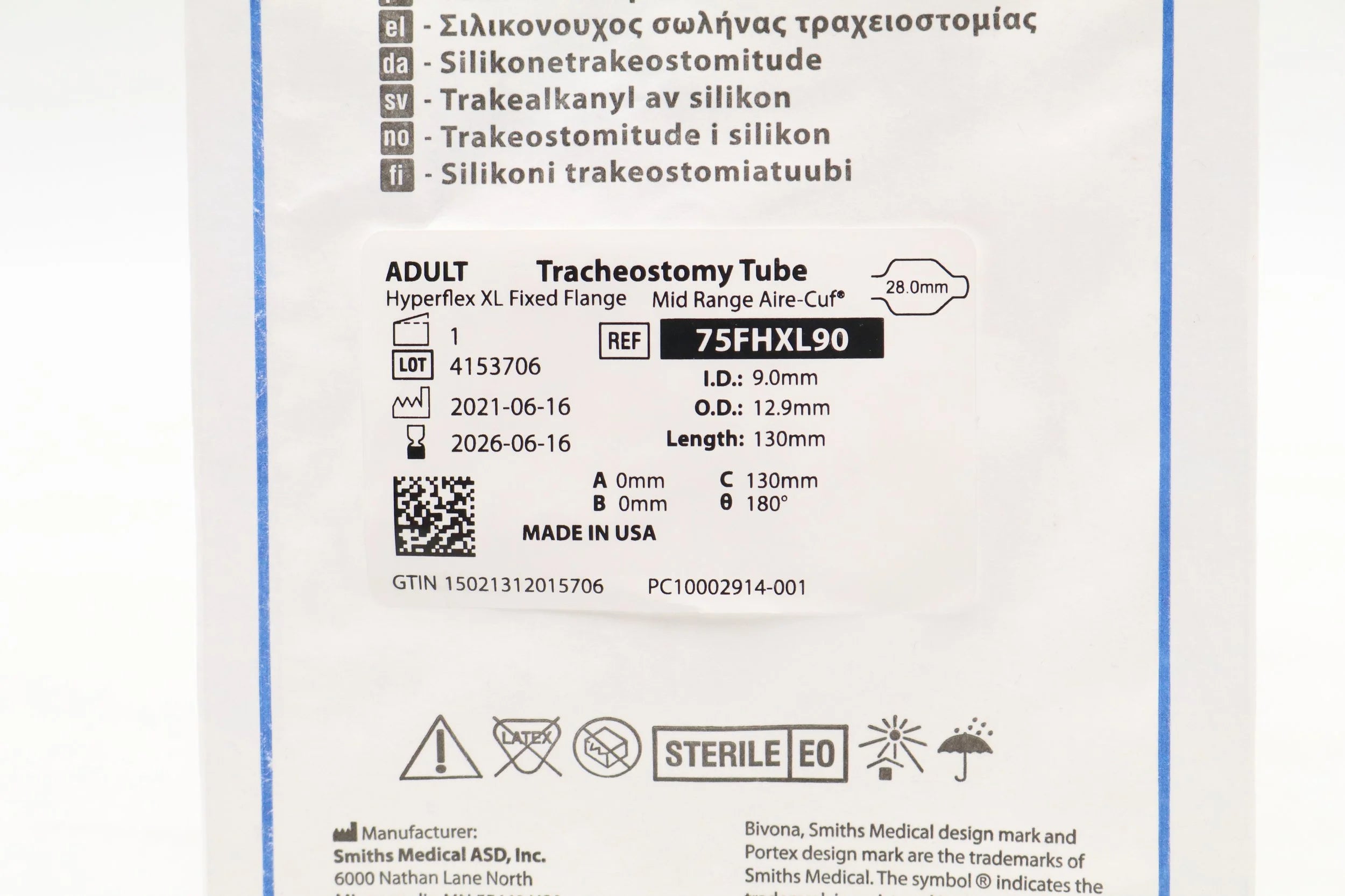 Smiths Medical | 75FHXL90 | PORTEX BIVONA SILICONE MID-RANGE AIRE-CUF FIXED NECK FLANGE HYPERFLEX EXTRA LENGTH TRACHEOSTOMY TUBE, 9.0MM
