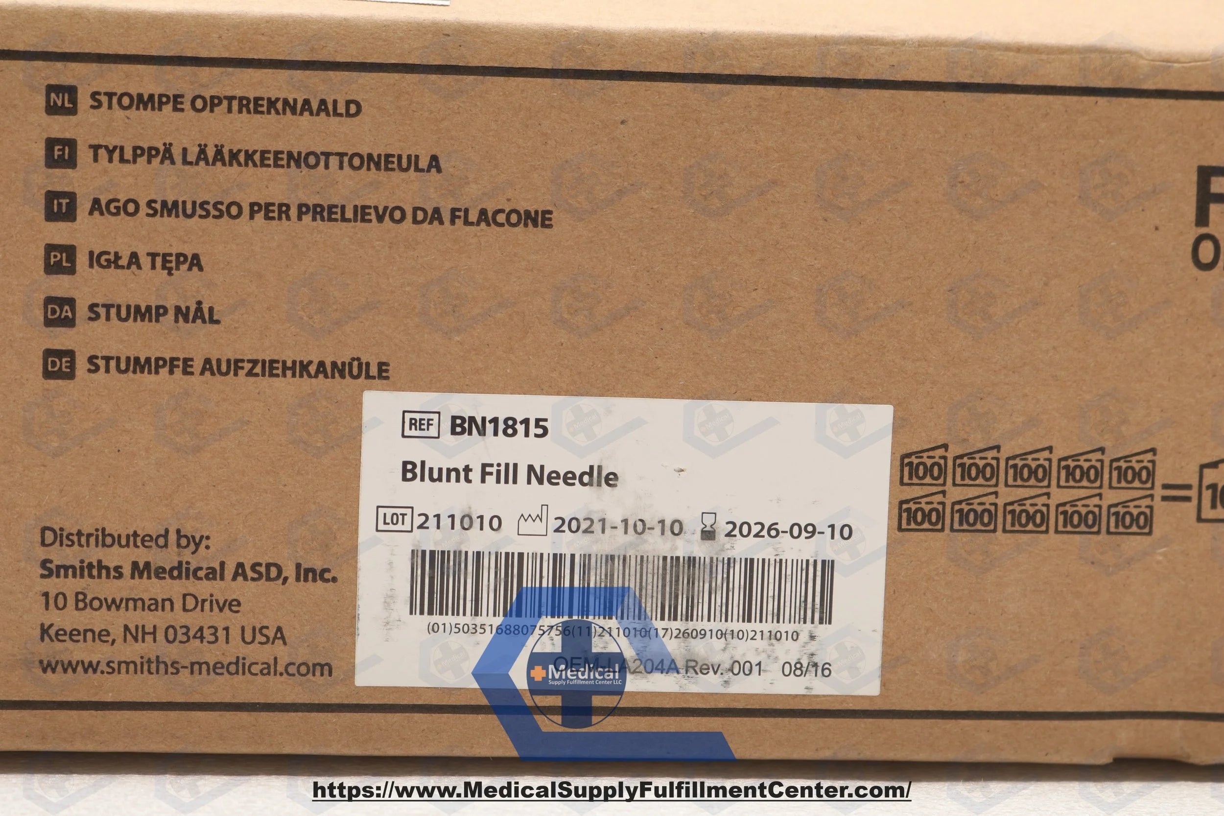 SMITHS MEDICAL | BN1815 | IN-DATE | BOX OF 100 | Blunt Fill Needles - Blunt-Fill Needle, 18G x 1-1/2"