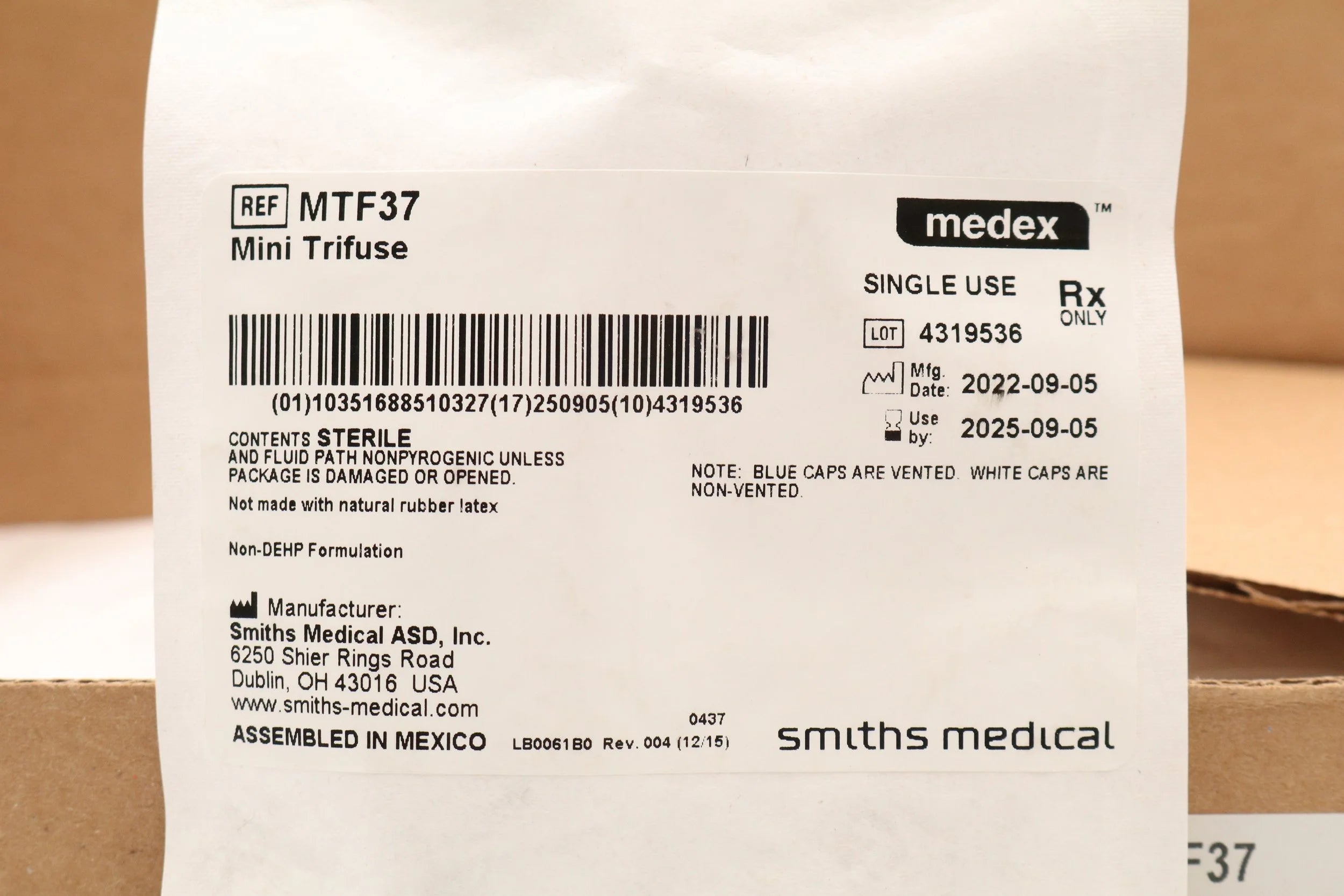 Smiths Medical | MTF37 | BOX OF 25 | Small Bore Extension Sets - Extension Set, Admin, Trifuse