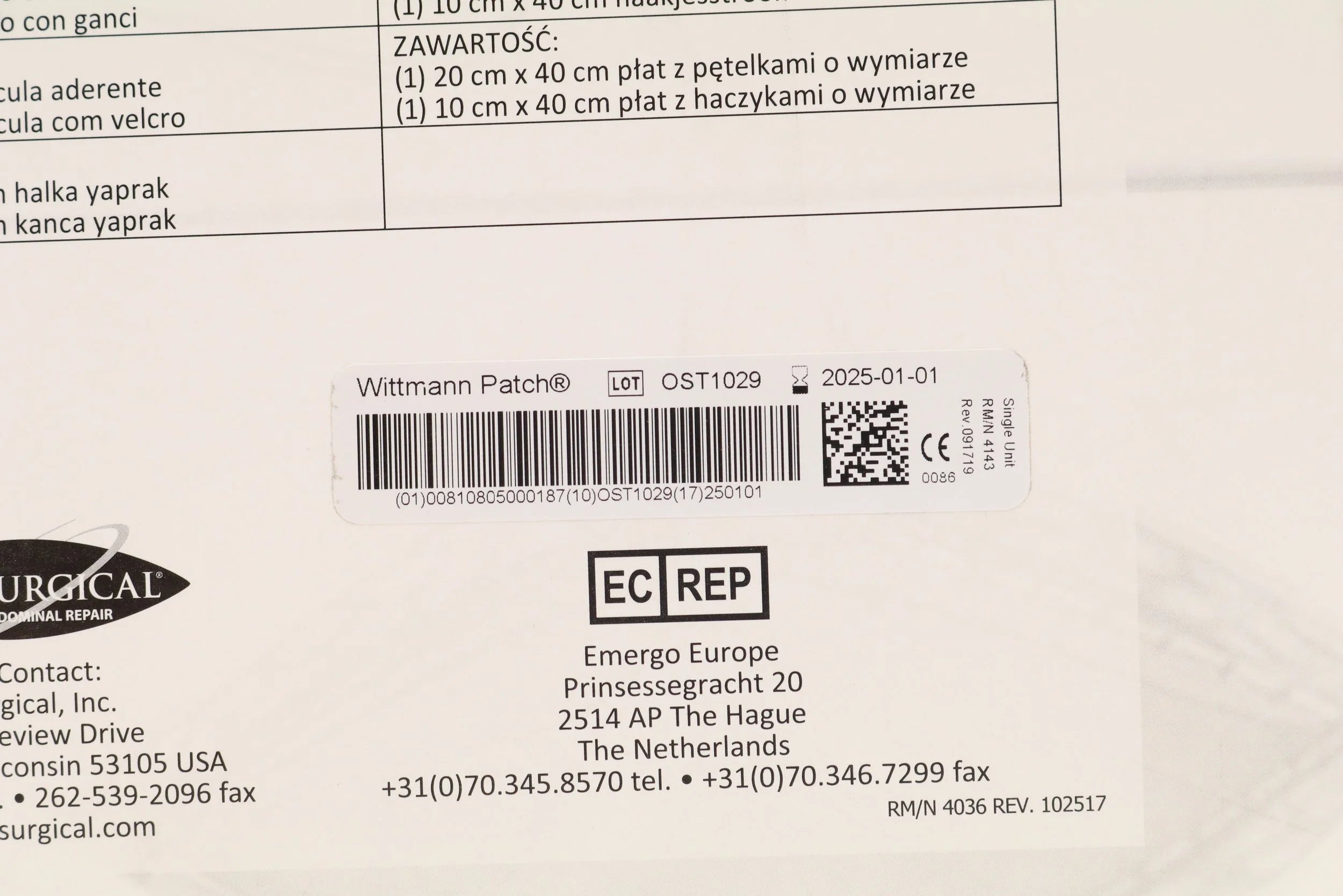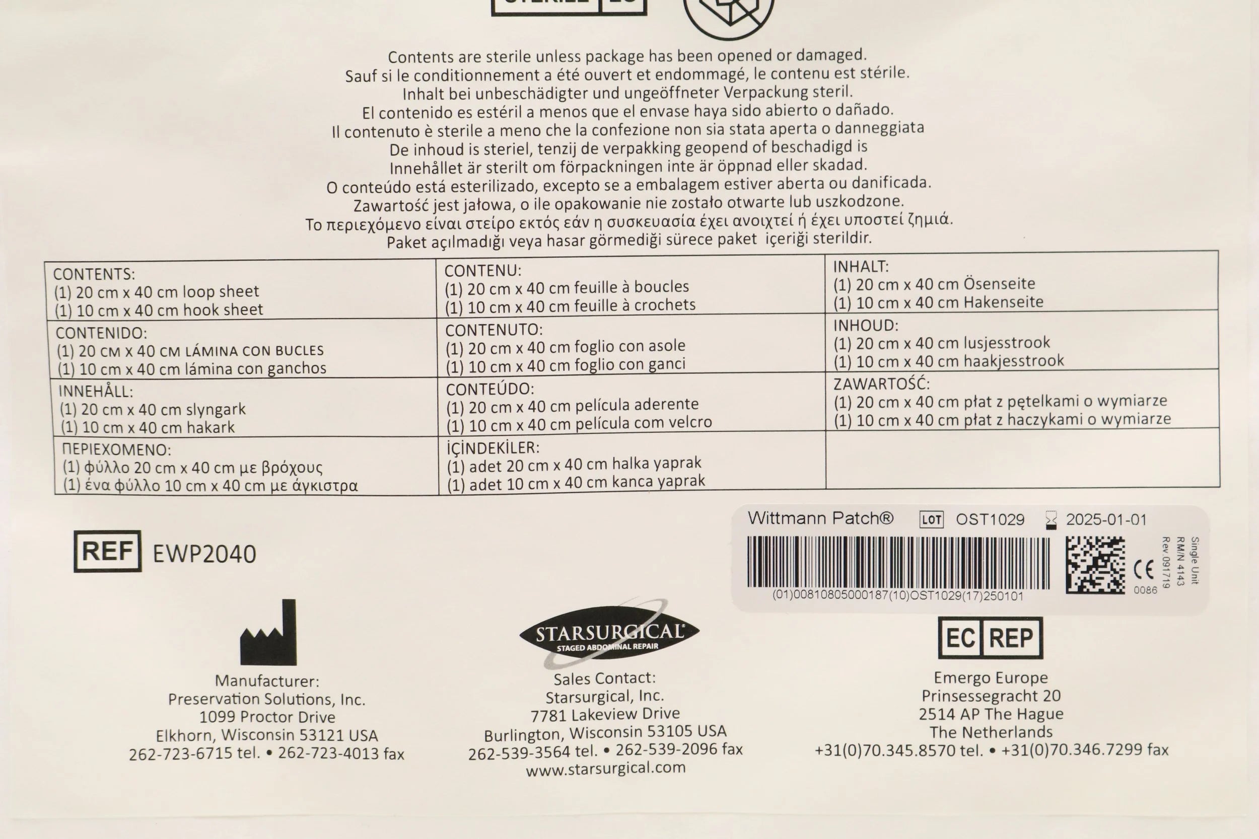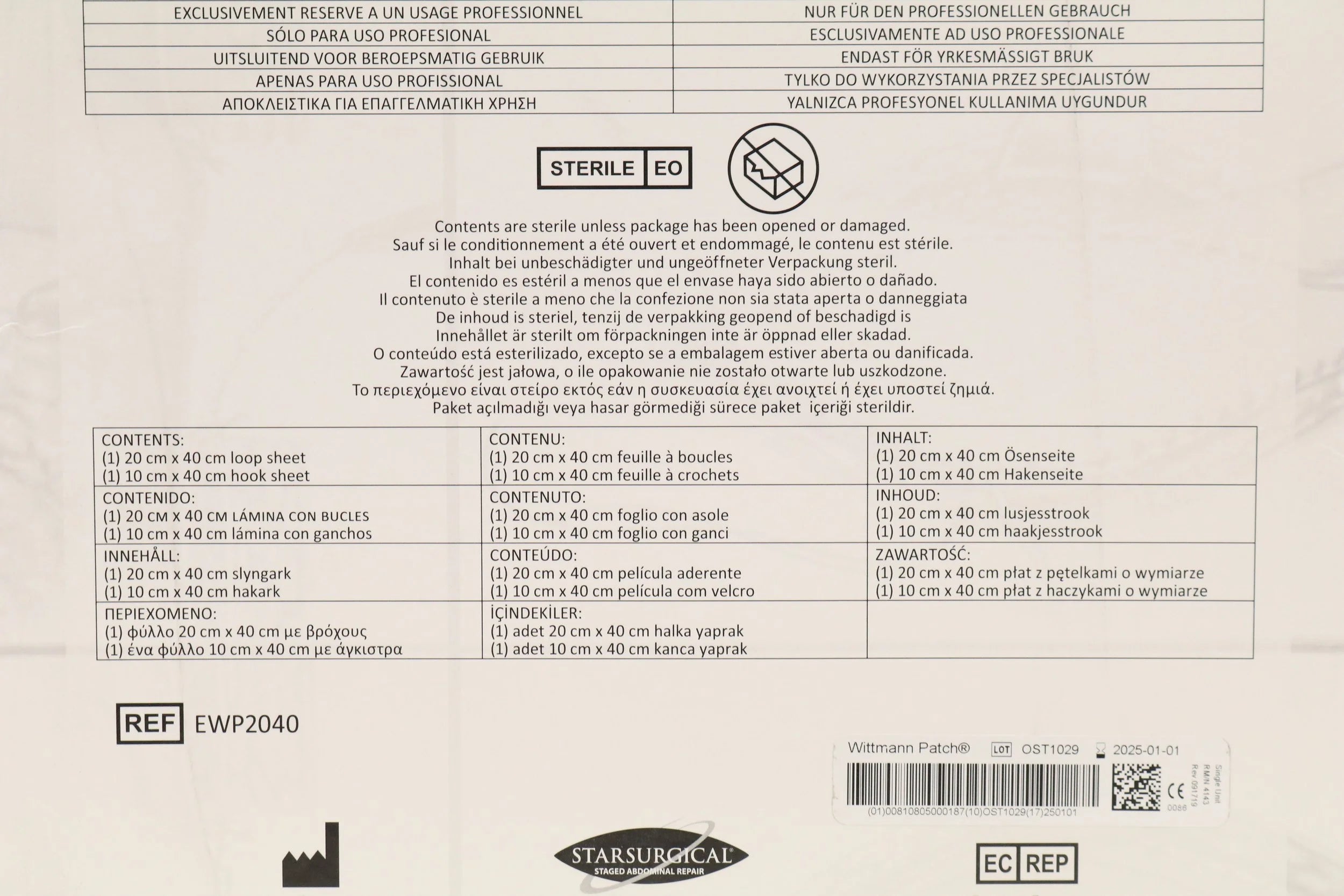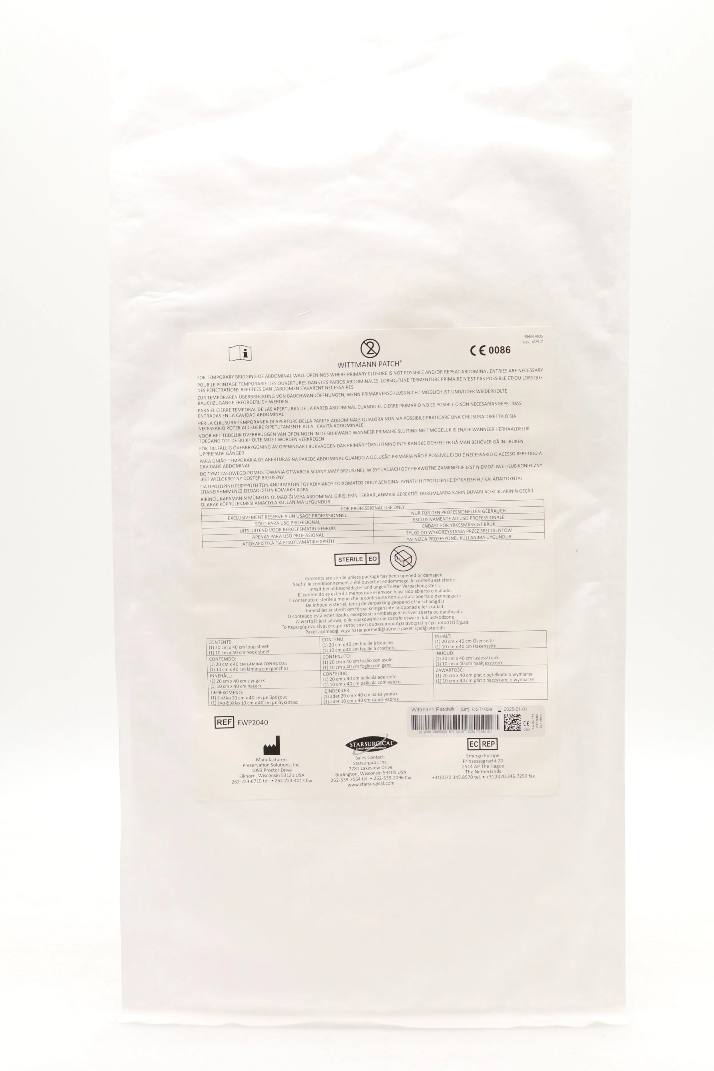 StarSurgical | EWP2040 | EXPIRED | EACHES | Wittmann Patch 20cm x 40cm (WP2040)