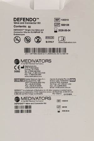 MEDIVATORS | 100310 | IN-DATE | BOX OF 50 | Defendo Air/Water, Suction, Biopsy Valve and Auxiliary Water Jet Connector Kit for Olympus