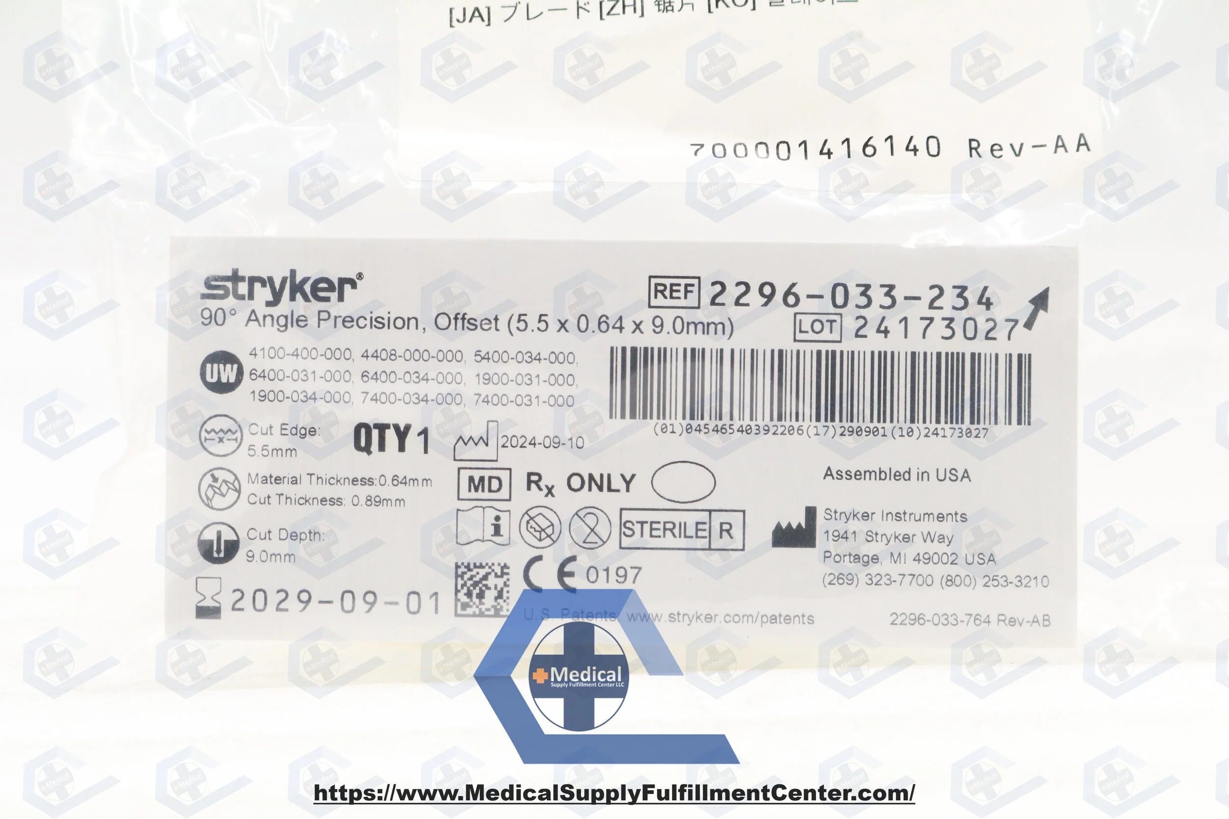 Stryker | 2296-033-234 | IN-DATE | EACHES | Blade, Bent, Coarse, Offset 5.5mm x 9mm x 0.64mm