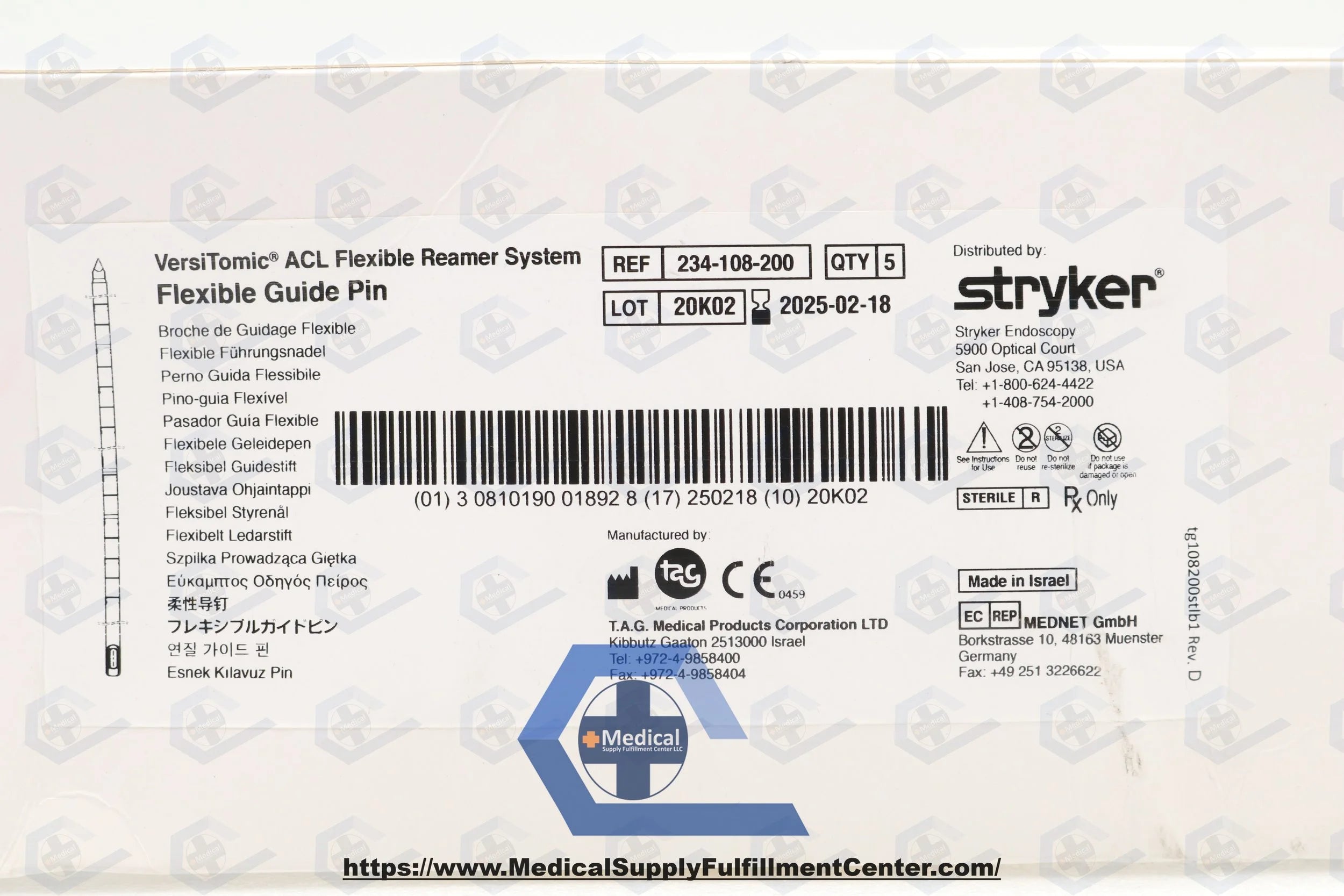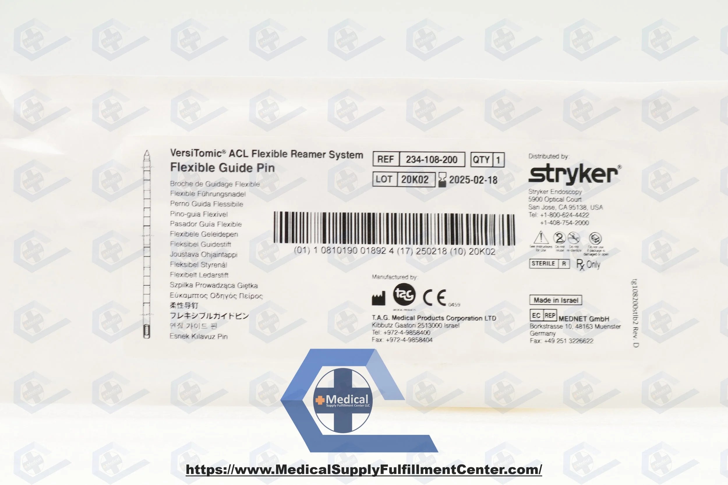 STRYKER | 234-108-200 | SHORT DATE | BOX OF 5 | Stryker VersiTomic ACL Flexible Guide Pin