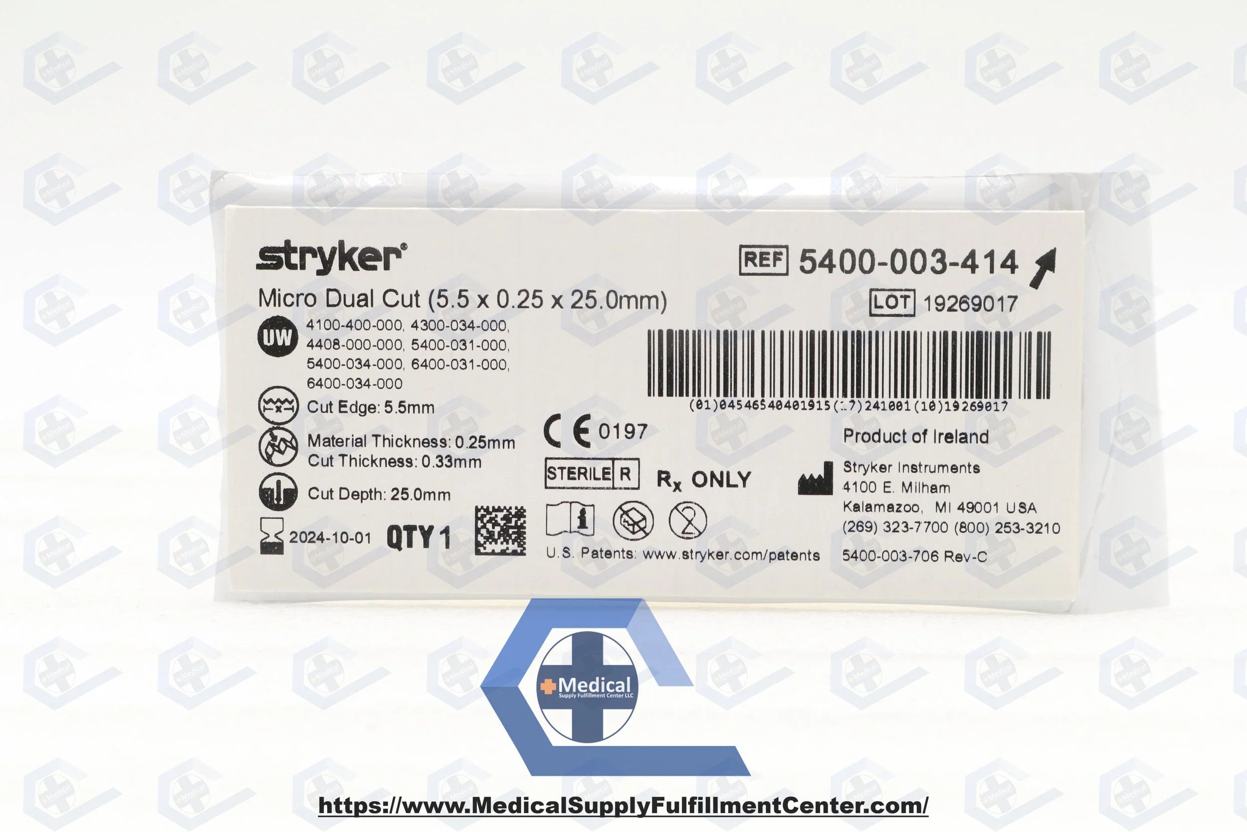 STRYKER | 5400-003-414 | EXPIRED | EACHES | Micro Dual Cut 5.5 x 0.25 x 25mm