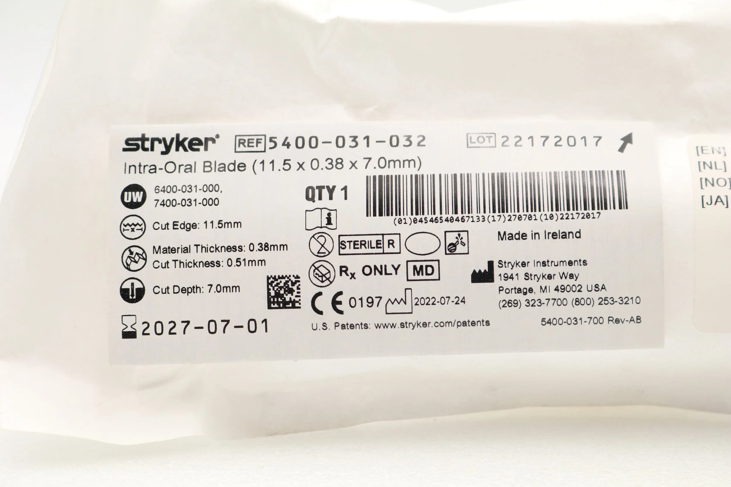 Stryker | 5400-031-032 | IN-DATE | EACHES | Core Intra-Oral Blade 11.5mm x 7mm x 0.38mm