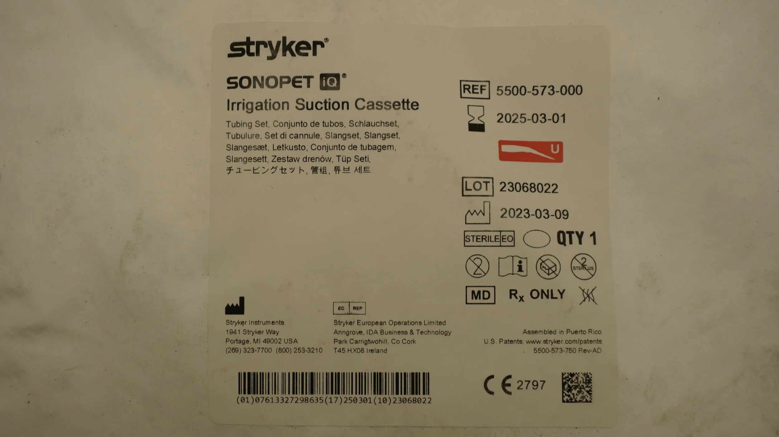 STRYKER | 5500-573-000 | EXPIRED | EACHES | SONOPET IQ Irrigation Suction Cassette