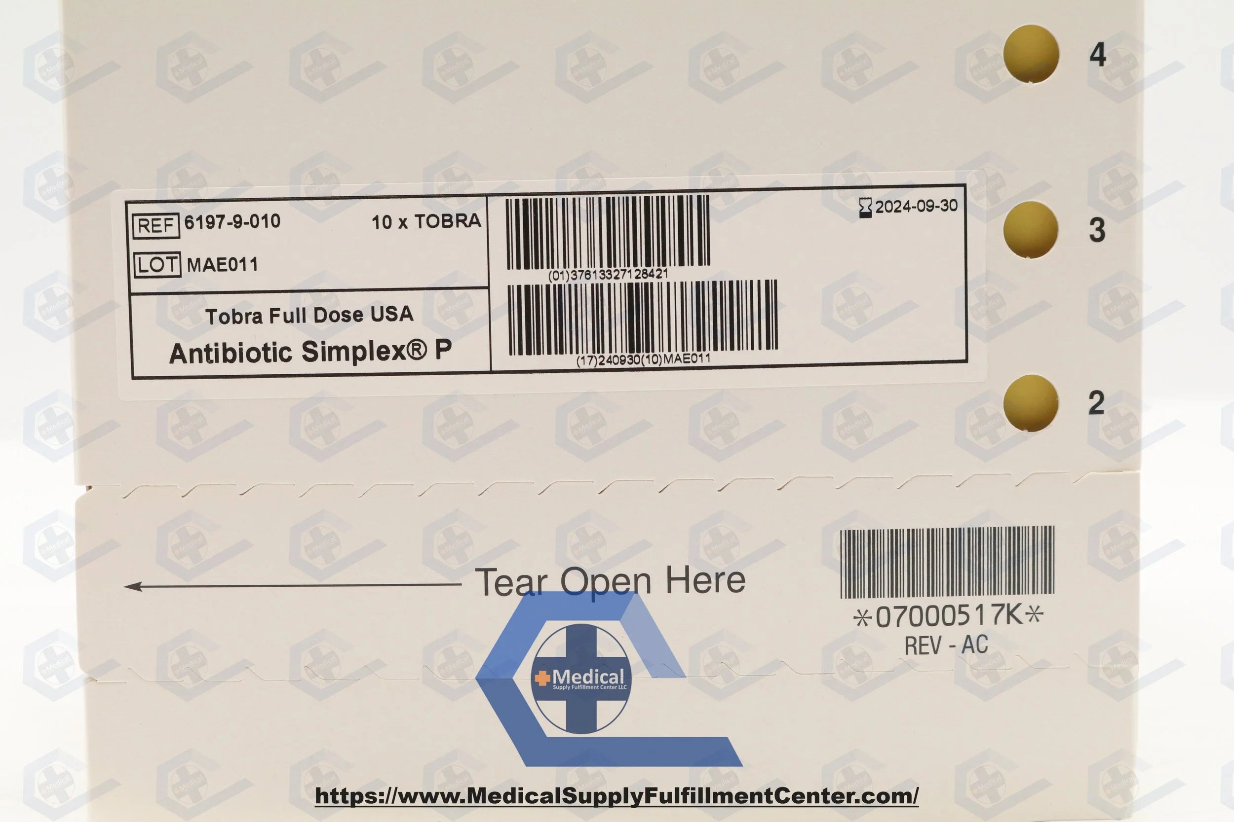 Stryker | 6197-9-010 | EXPIRED | BOX OF 10 | Simplex P with Tobramycin, Antibiotic Bone Cement