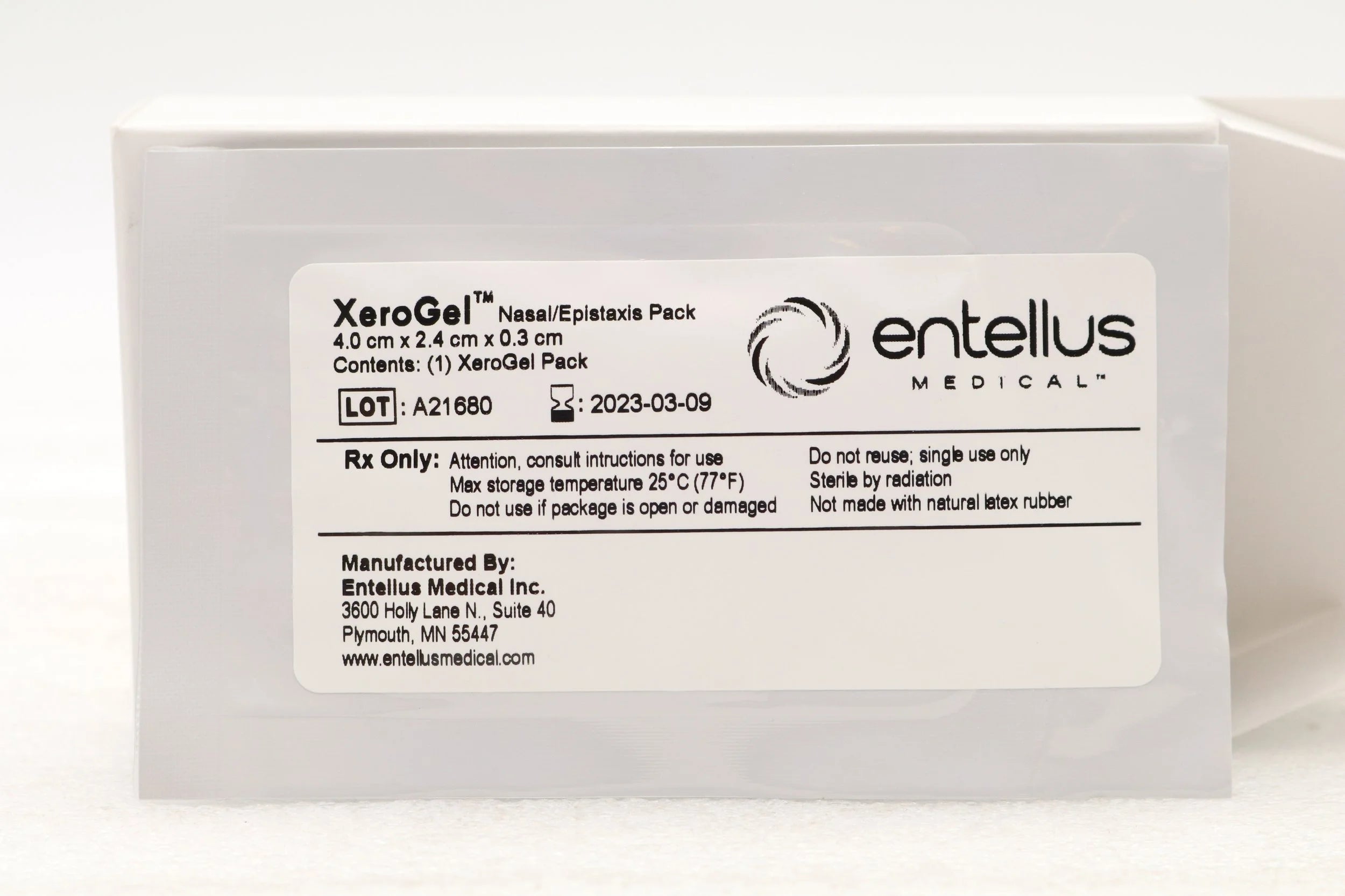 ENTELLUS MEDICAL | XG-108 | EXPIRED | BOX OF 8 | XEROGEL NASAL/EPISTAX PACK, 4.0CM X 2.4CM X 0.3CM (TEMP SENSITIVE)