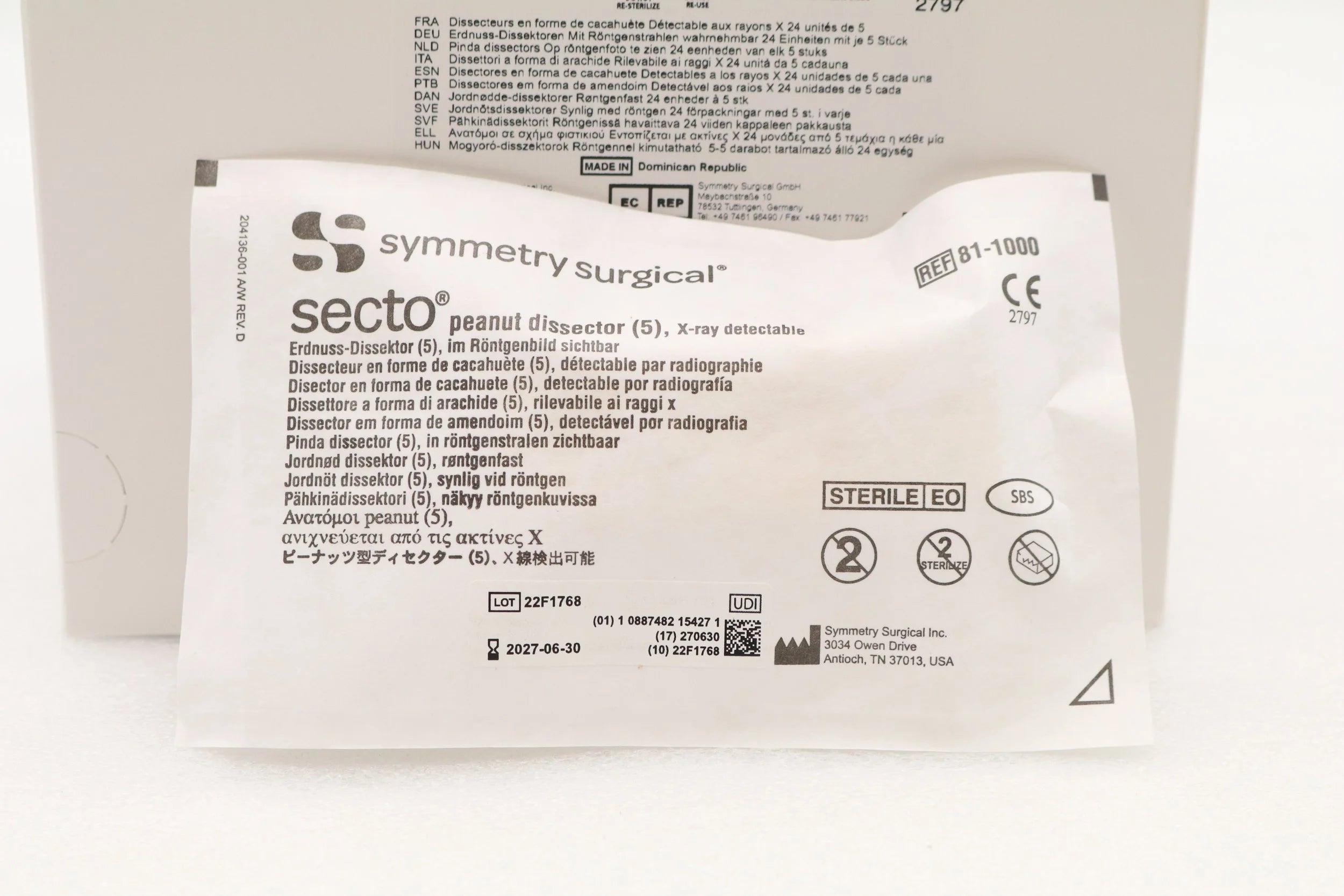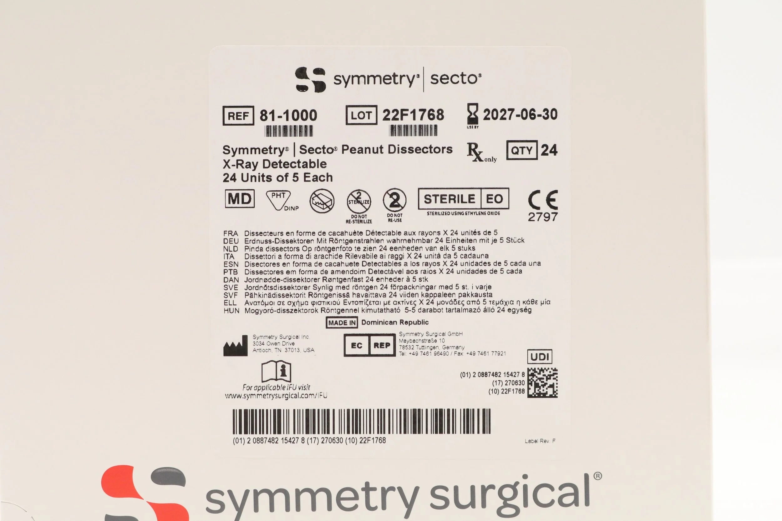 SYMMETRY SURGICAL | IN-DATE | 81-1000 | CASE OF 96 | Secto Peanut Dissector, X-RAY DETECTABLE, 3/8"