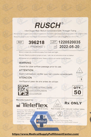 Teleflex | 396218 | NO DATE | BOX OF 50 | Oxygen Masks - Medium Concentration Oxygen Mask with 7' Tube, Infant