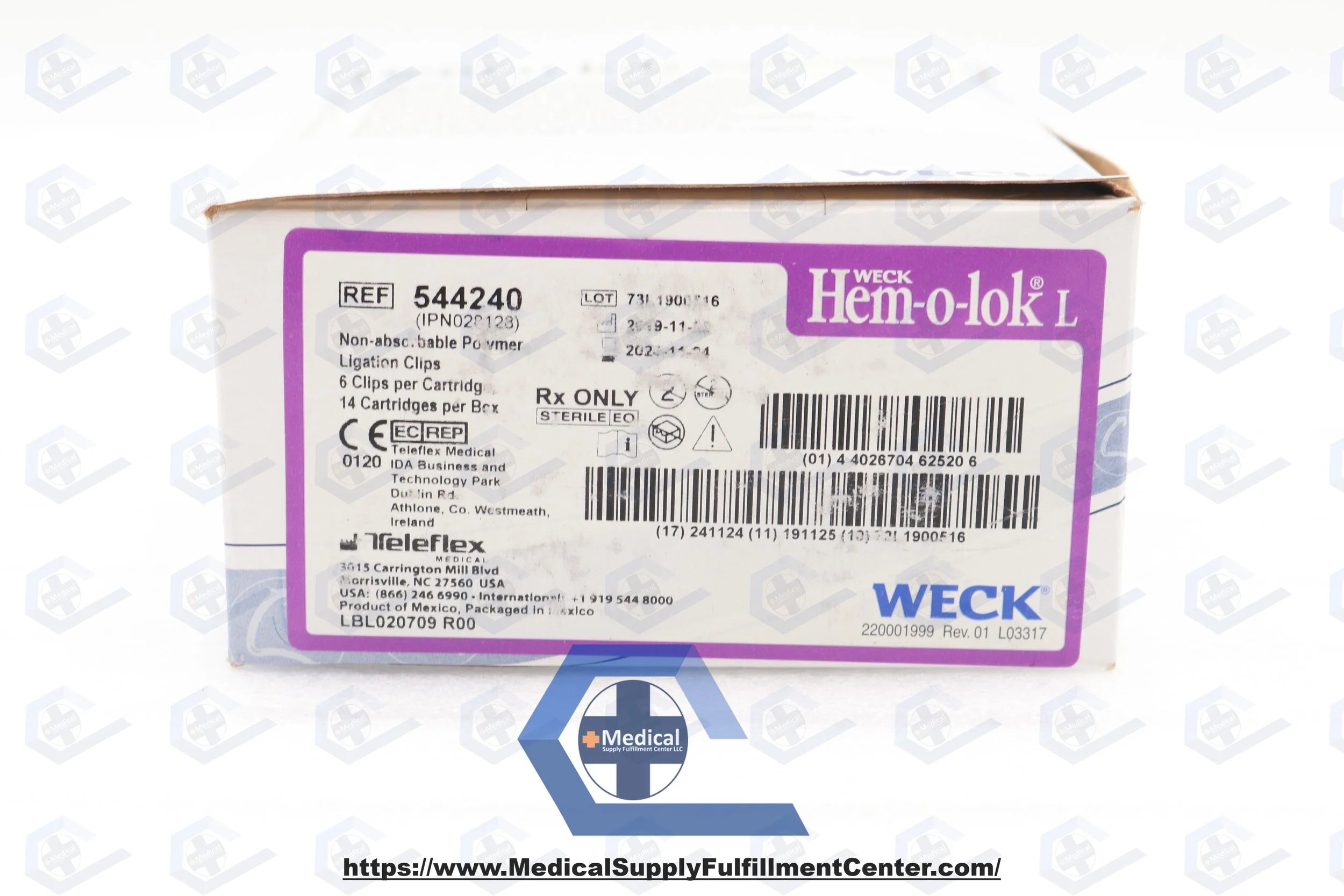 Weck | 544240 | EXPIRED | BOX OF 14 | Hem-o-Lok Polymer Ligating Clips: Large, 6 Clips/Cartridge