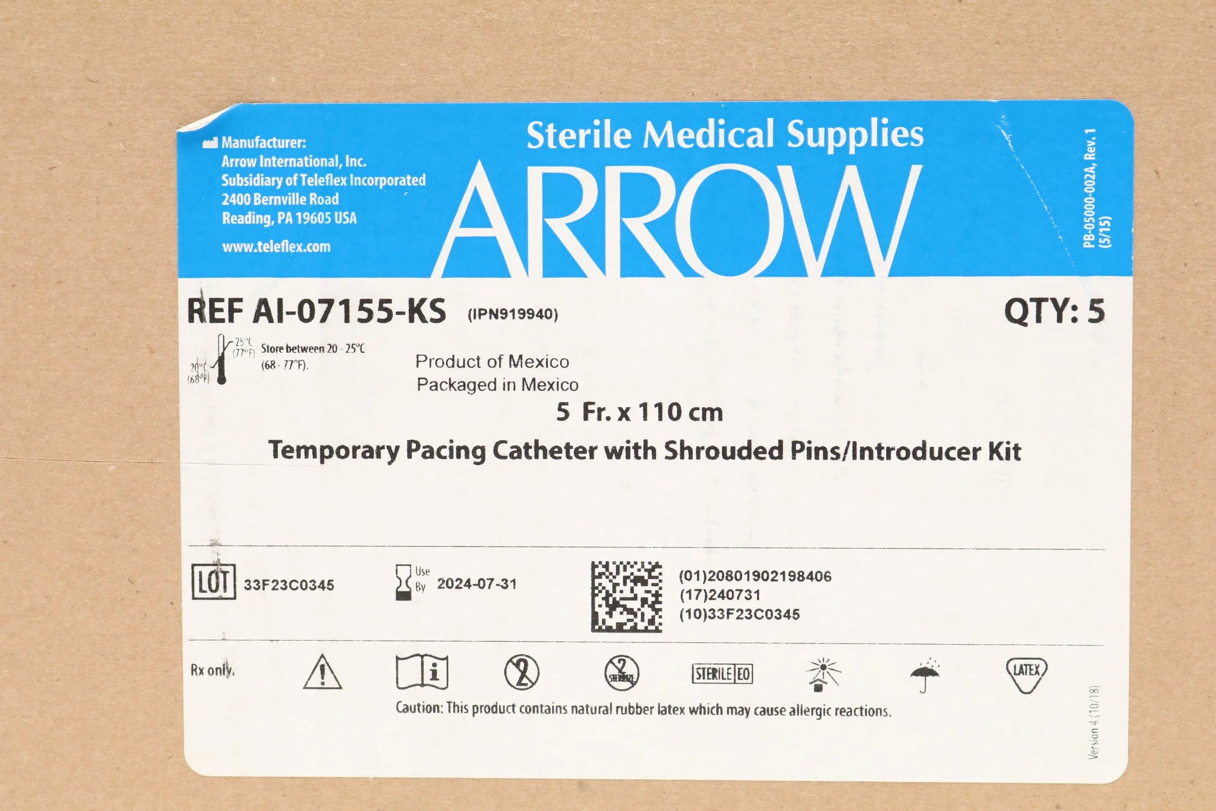 ARROW | AI-07155-KS | EXPIRED | EACHES | Introducer Kit with Pacing Catheter, 5 Fr, 6 Fr Introducer