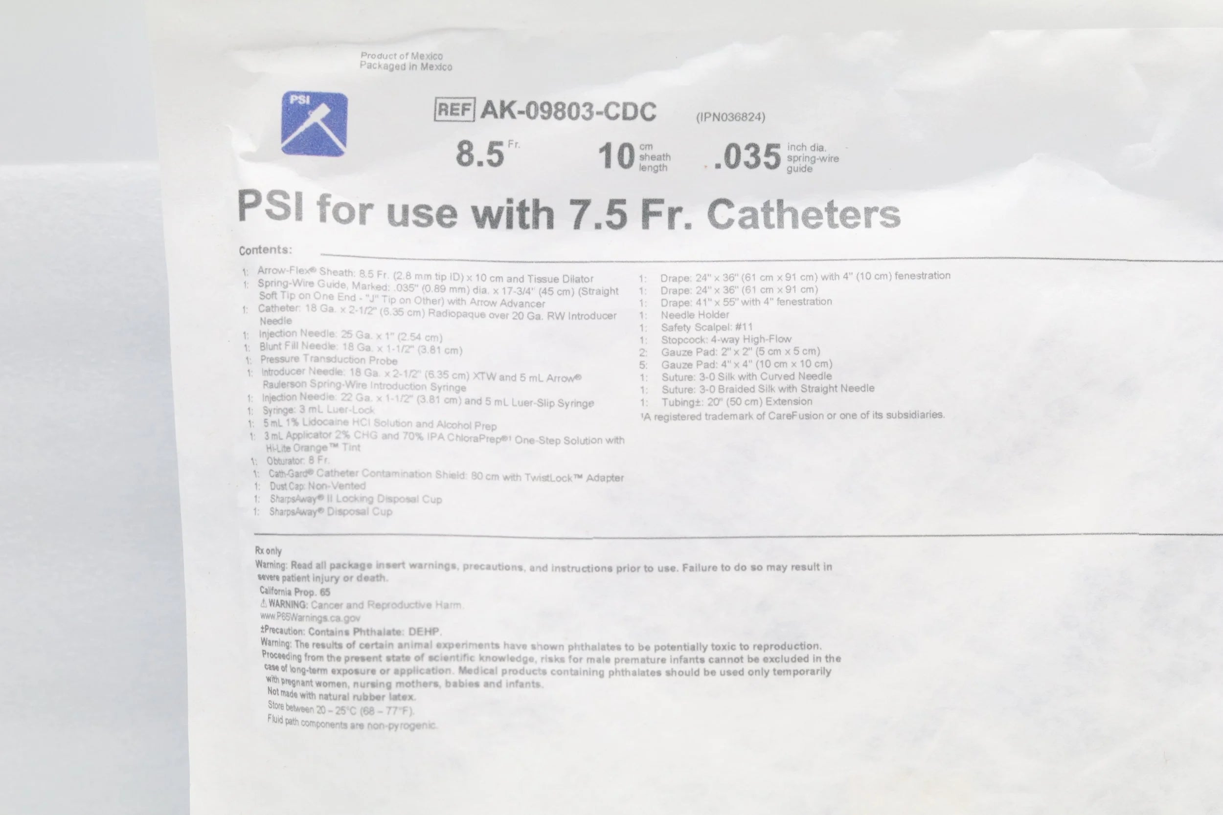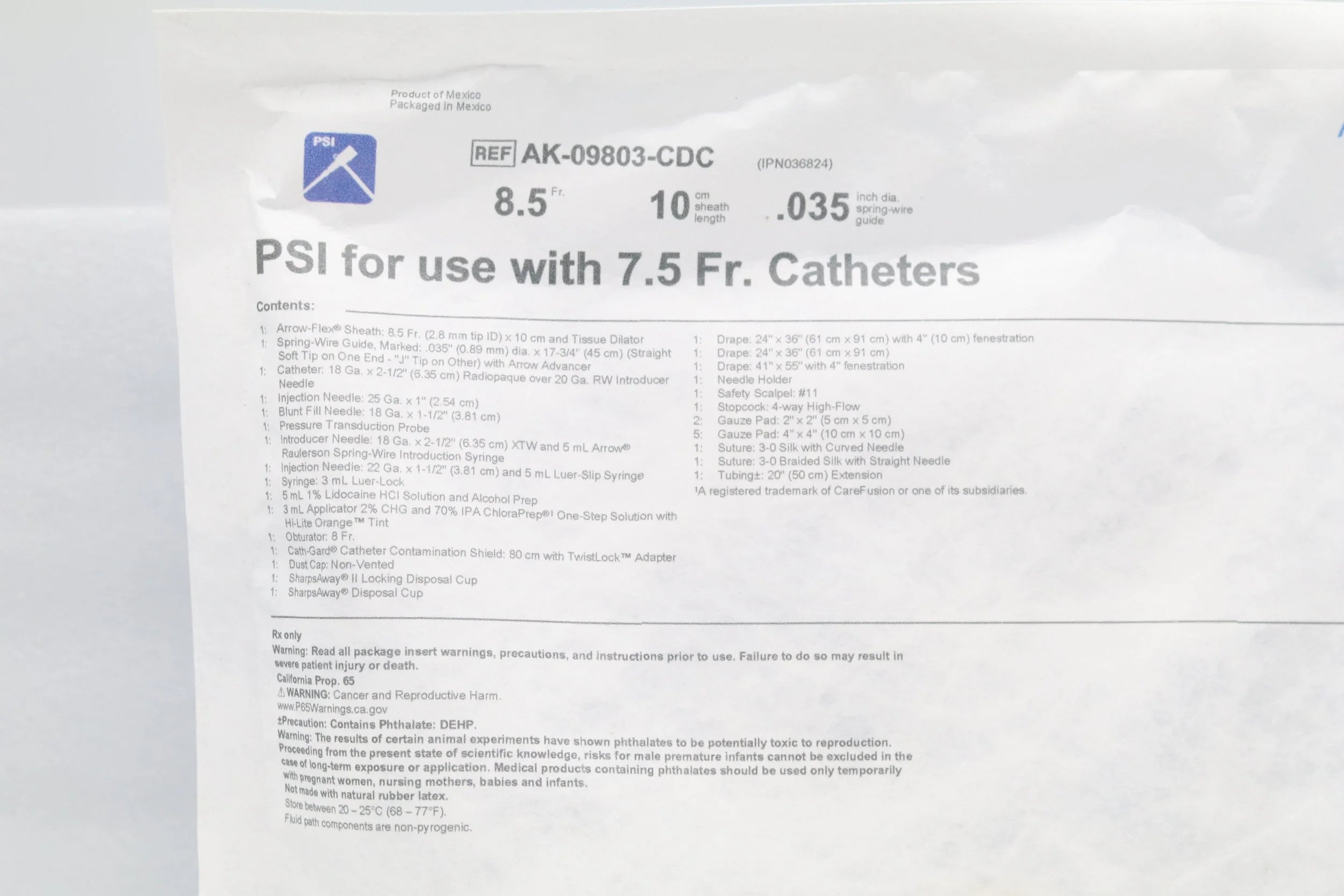 Teleflex | AK-09803-CDC | EXPIRED | EACHES | Arrow PSI (Percutaneous Sheath Introducer) Kit for use with 7.5 Fr. Catheters