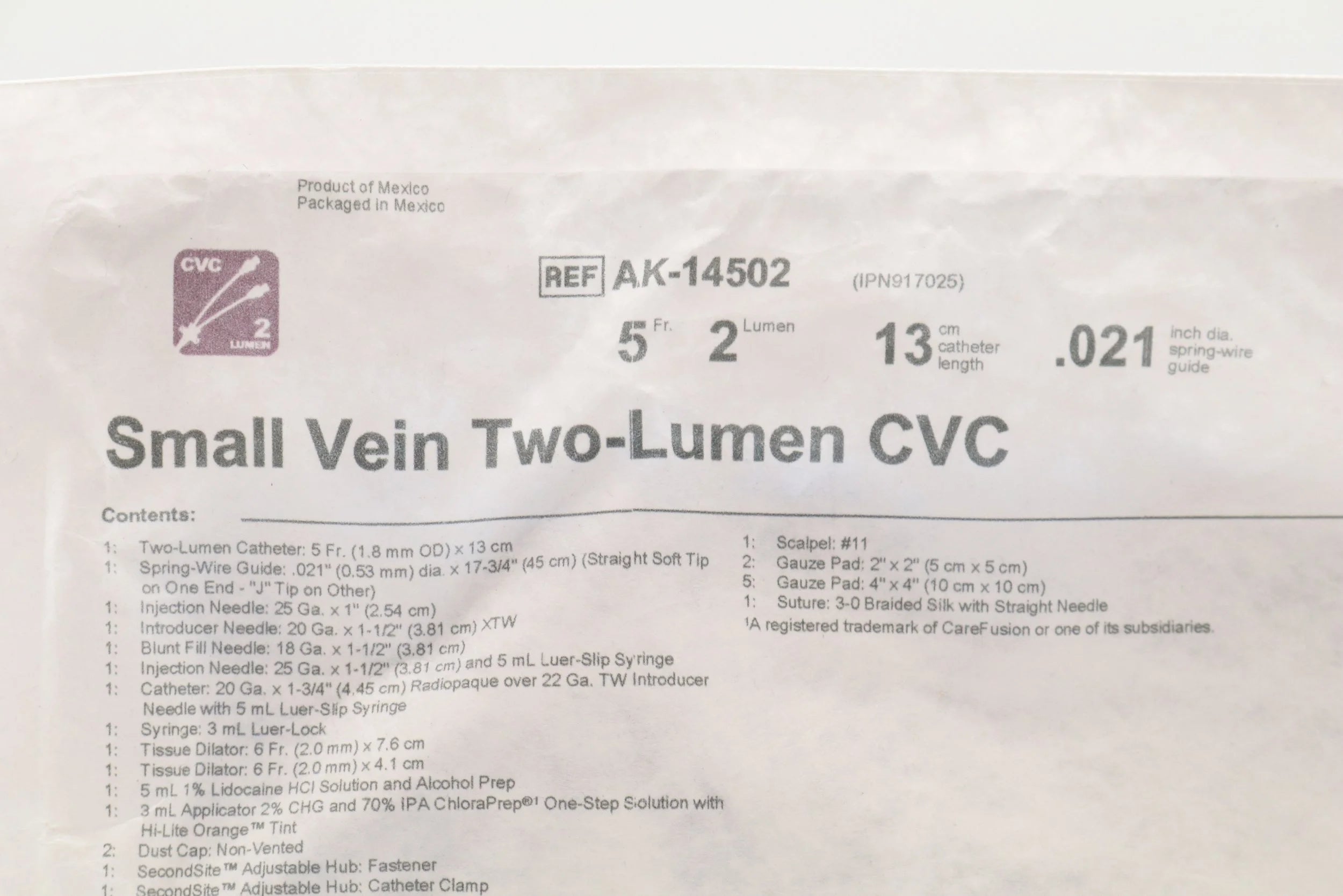 TELEFLEX AK-14502 ARROW SHORT DATE Pediatric Two-Lumen Central Venous Catheterization Kit, 5Fr (X)