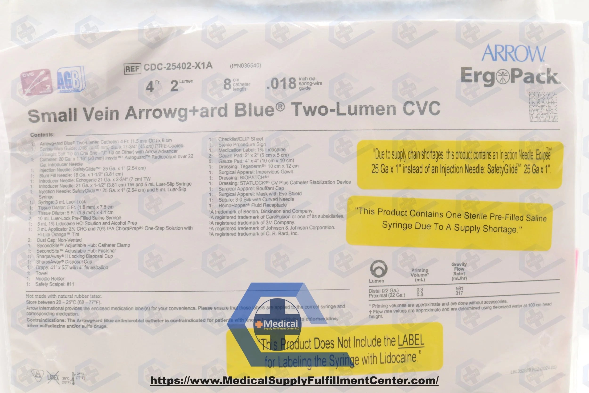 Teleflex | CDC-25402-X1A | In Date | Eaches | Teleflex Medical Pediatric 2Lumen CVC Kits - KIT, 2-L, CVC, 4 FR X 8 CM - CDC-25402-X1A