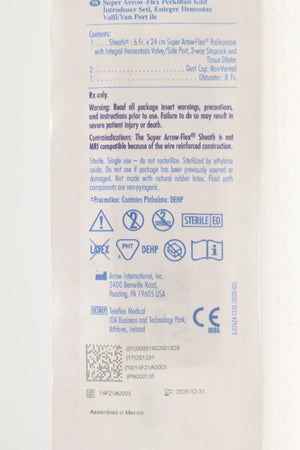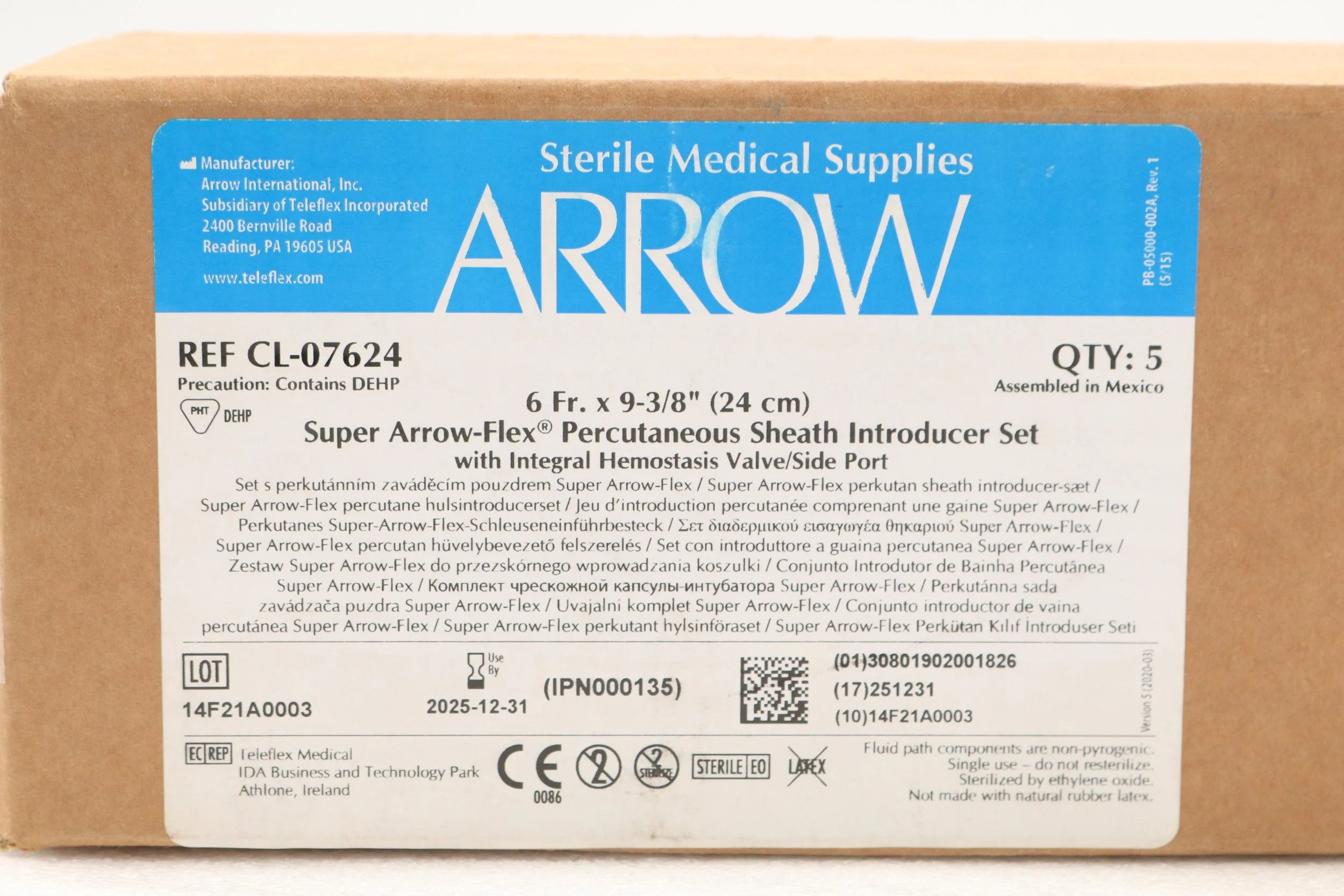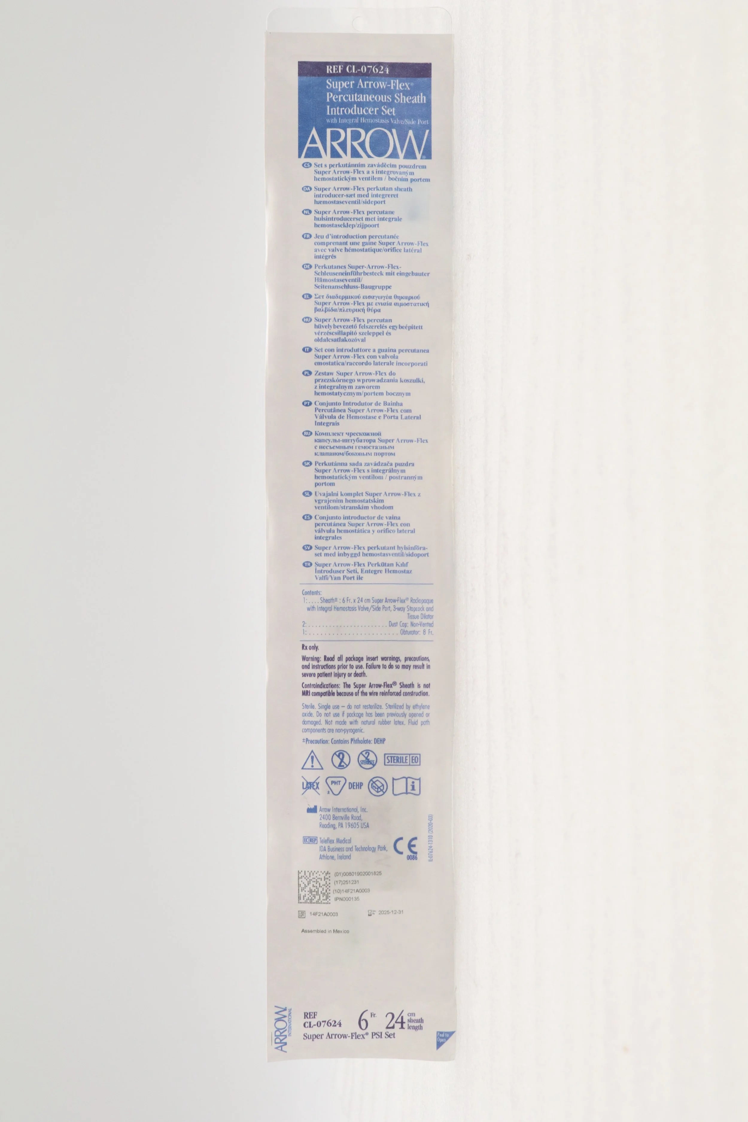 ARROW | CL-07624 | SHORT DATE | BOX OF 5 | SUPER ARROW-FLEX PERCUTANEOUS SHEATH INTRODUCER SET WITH INTEGRAL HEMOSTASIS VALUE/SIDE PORT, 6FR., 24CM SHEATH
