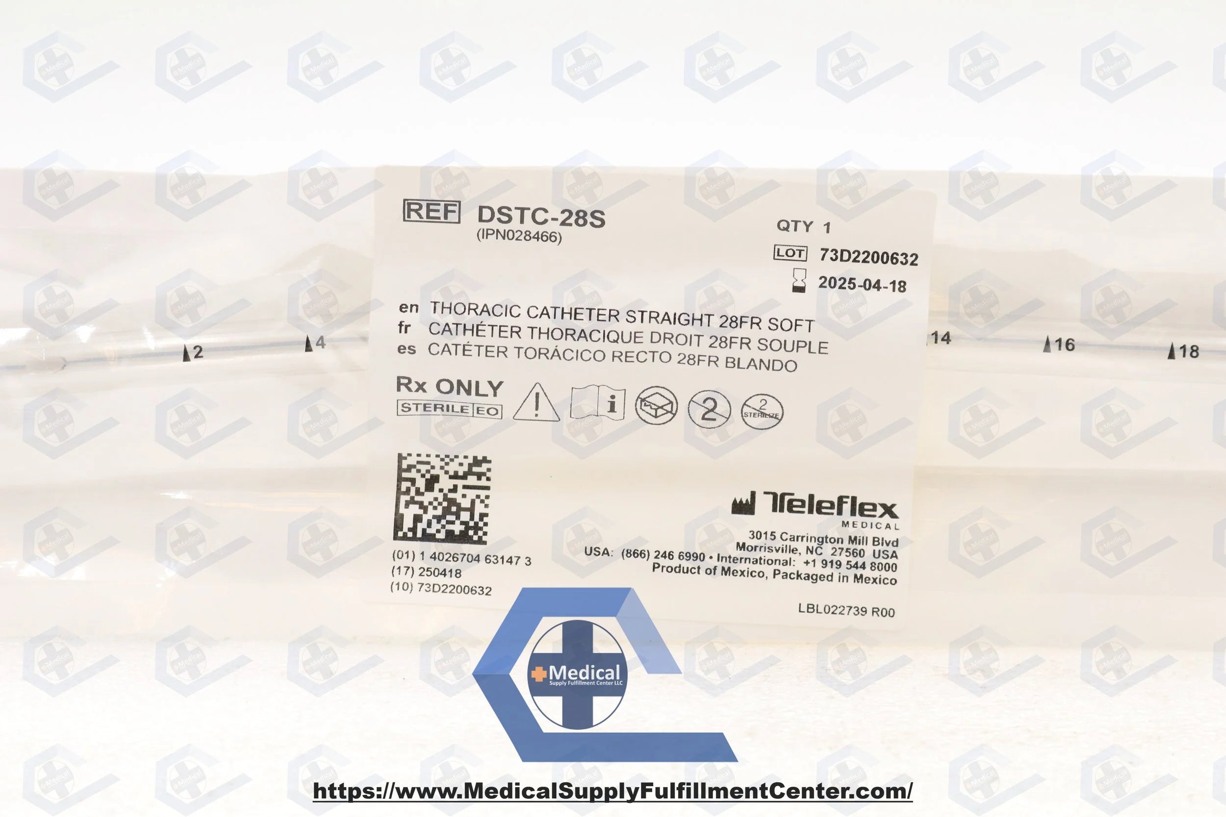 Teleflex | DSTC-28S | EACHES | SHORTDATE | Medical Thoracic Catheter - Thoracic Catheter, Straight, Soft, 28 Fr