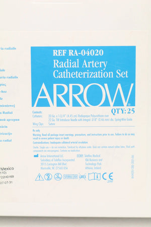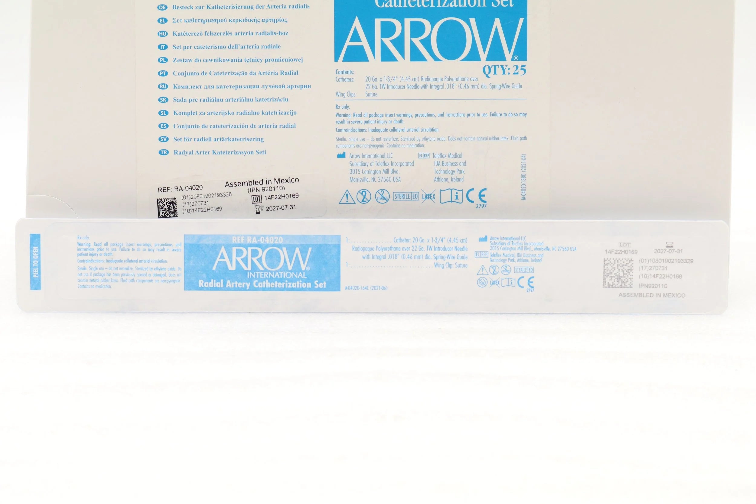 ARROW | RA-04020 | BOX OF 25 | Radial Artery Catheterization Set, 20 GA X 1-3/4"