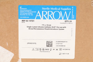 TELEFLEX | SS-14701 | INDATE | BOX OF 25 | Arrow Single Lumen Infusion Catheter (SLIC) 7F x 16cm