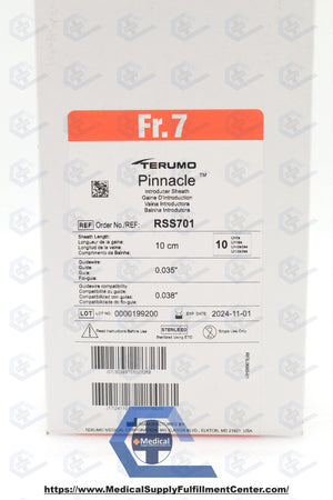 Terumo | RSS701 | EXPIRED | BOX OF 10 | Pinnacle Introducer Sheaths 7Fr x 10cm, 7Fr inner diameter, 2.5 cm dilator protruding length, with 0.035" mini guidewire