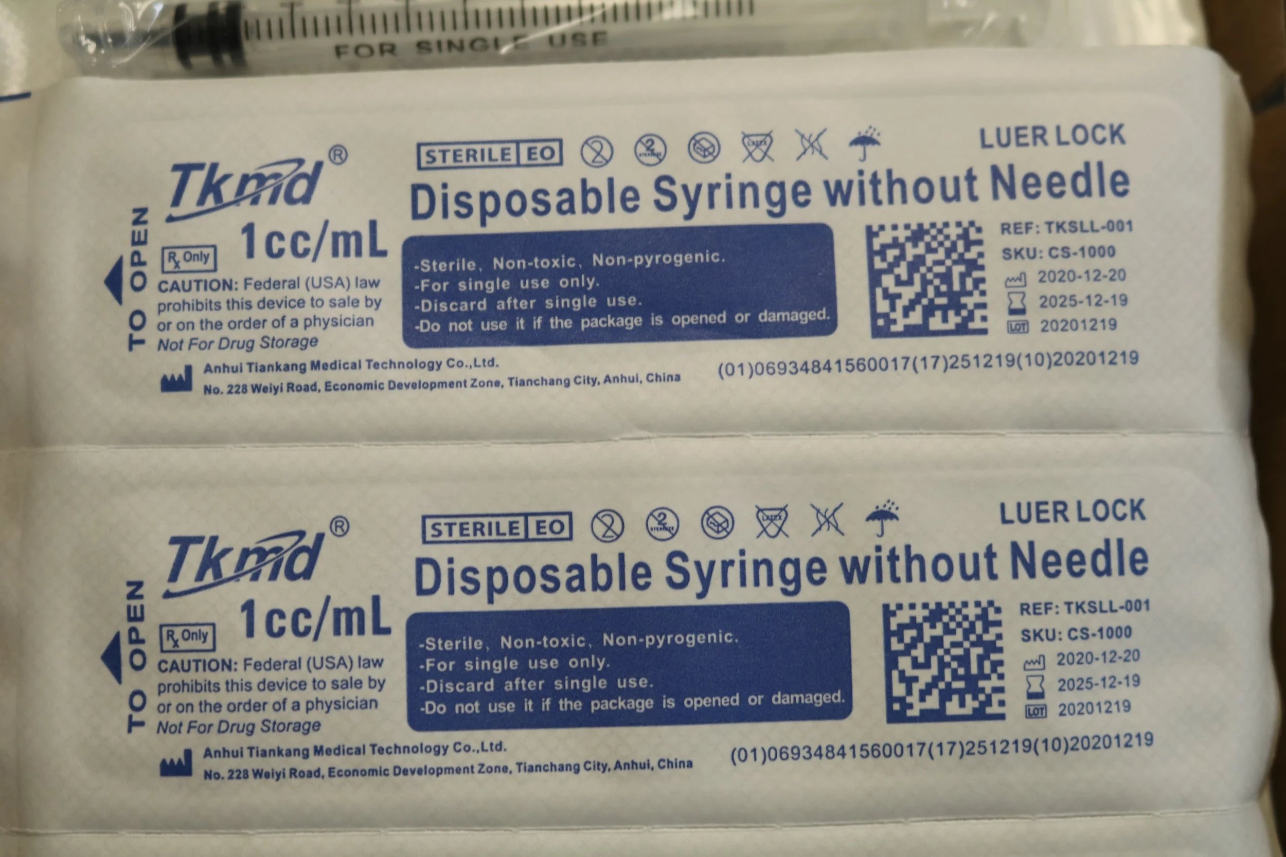TKmd | TKSLL-001 | IN DATE | BOX OF 100 | Disposable Syringe without Needle 1ml Luer Lock