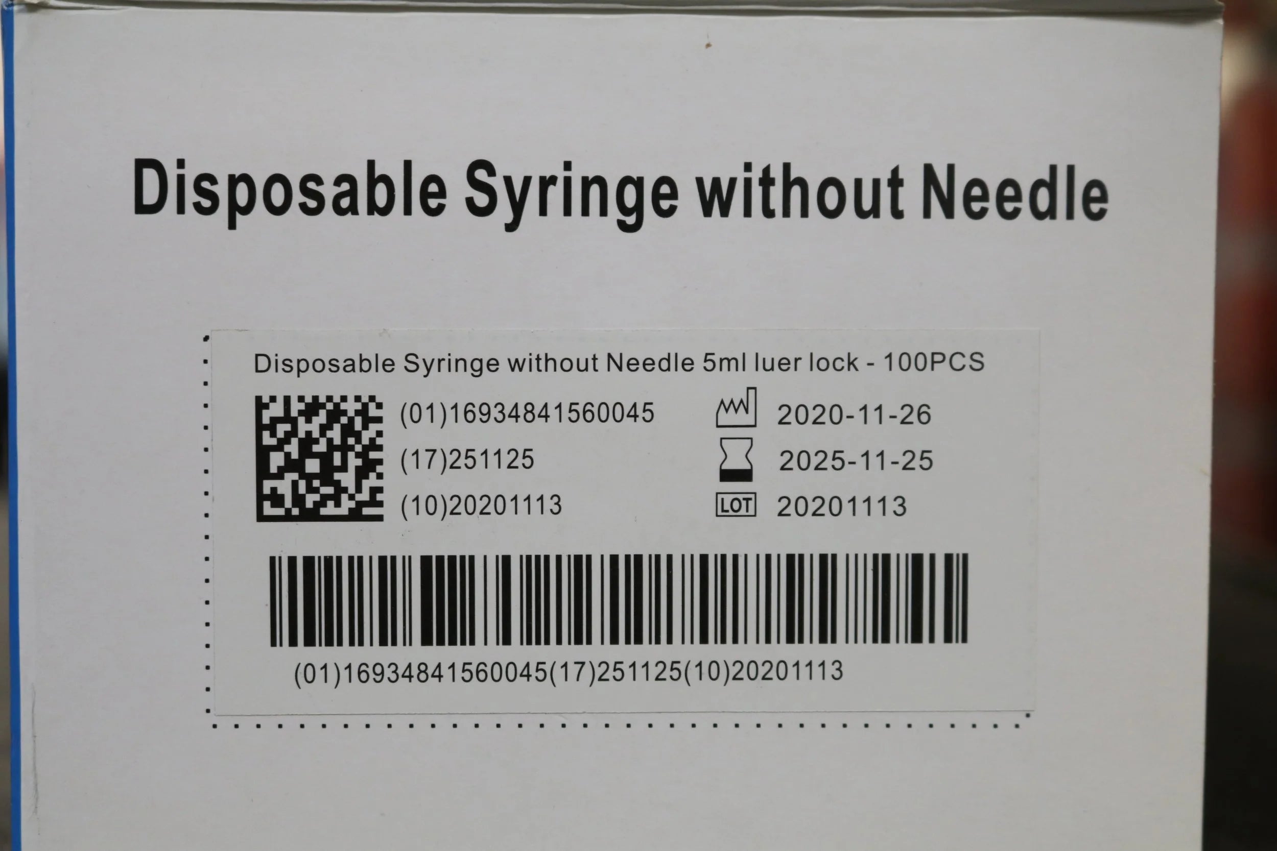 TKmd | TKSLL-004 | IN DATE | BOX OF 100 | Disposable Syringe without Needle 5ml Luer Lock