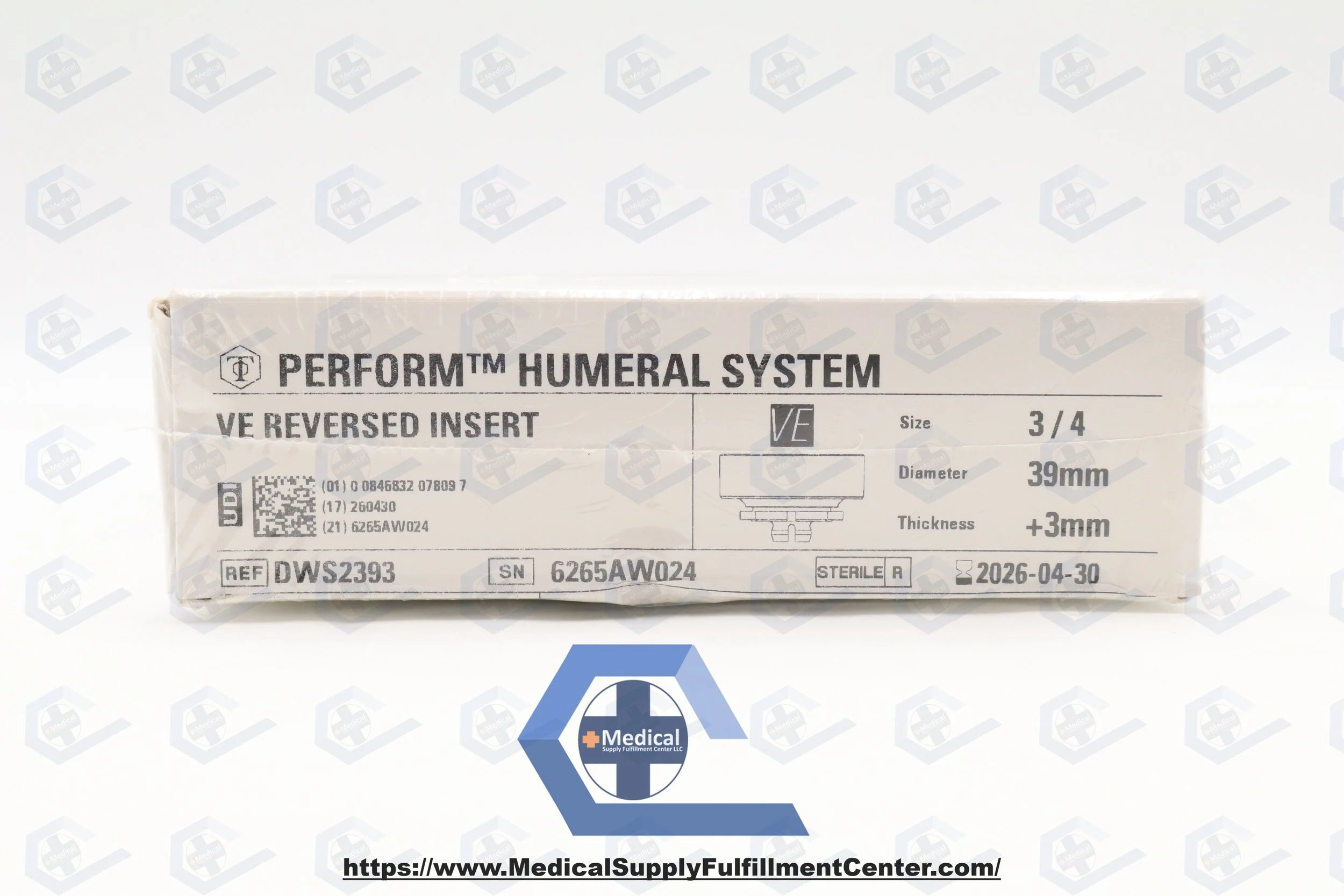 TORNIER | DWS2393 | IN-DATE | EACHES | PERFORM HUMERAL SYSTEM SIZE 3/4 DIA. 39MM THICKNESS +3MM