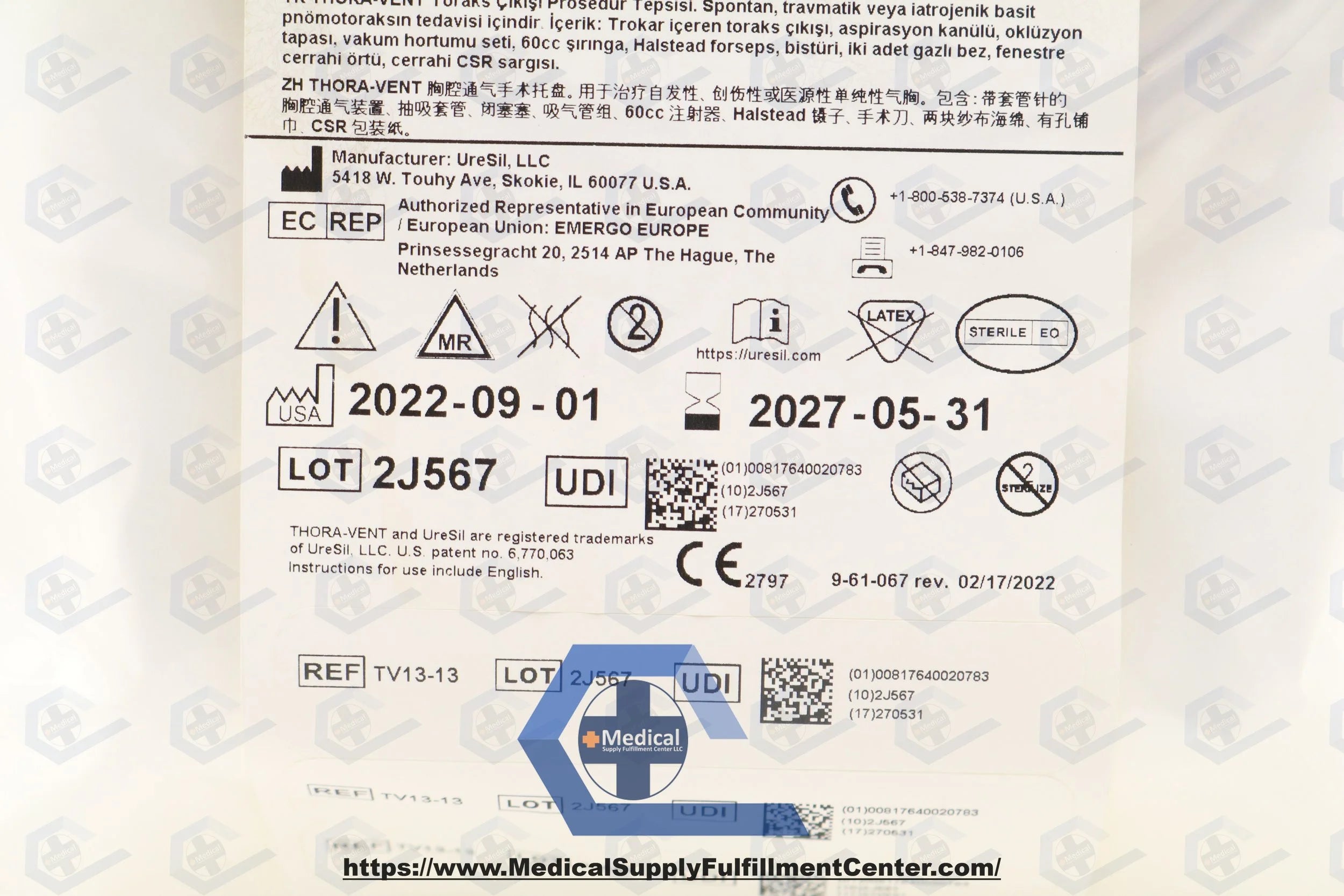 Uresil | TV13-13 | Thora-Vent Thoracic Vent Procedure Tray 13F/13cm