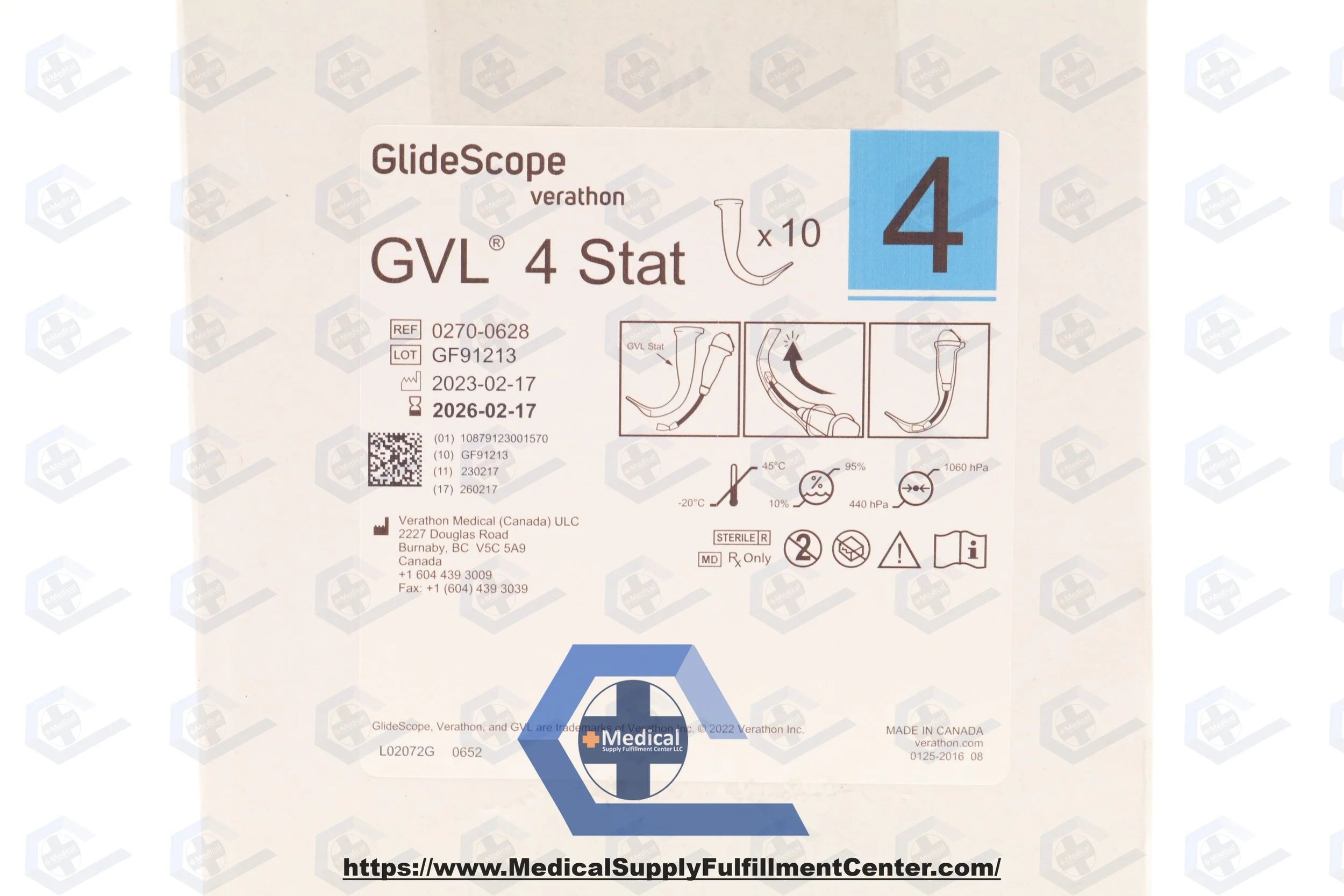Verathon | 0270-0628 | IN-DATE | EACHES | 0574-0101 GlideScope Video Laryngoscope GVL 4 Stat