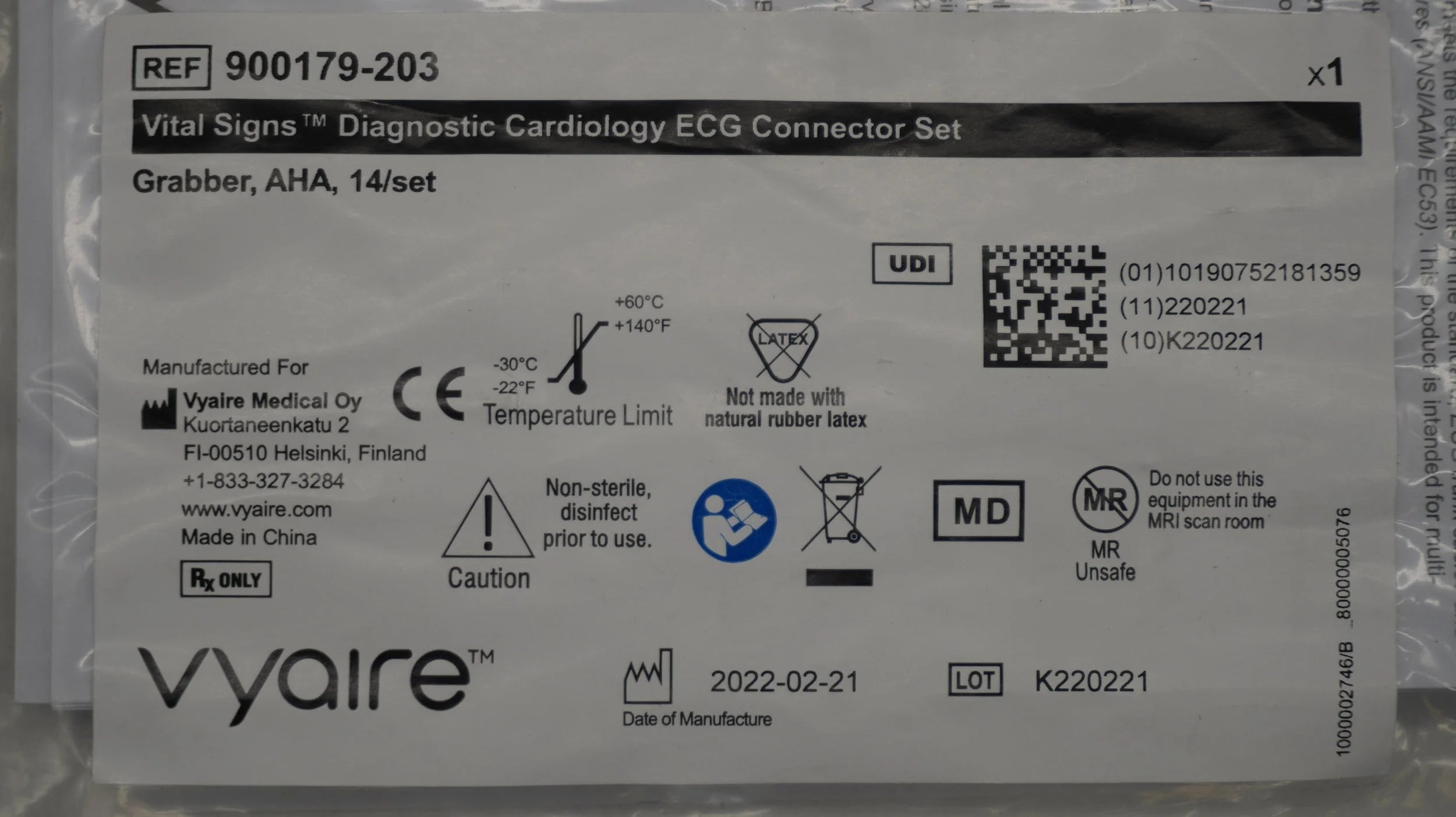 Vyaire Medical | 900179-203 | NO DATE | EACHES | Vital Signs Diagnostic Cardiology ECG Connector Set Grabber, AHA 14/SET