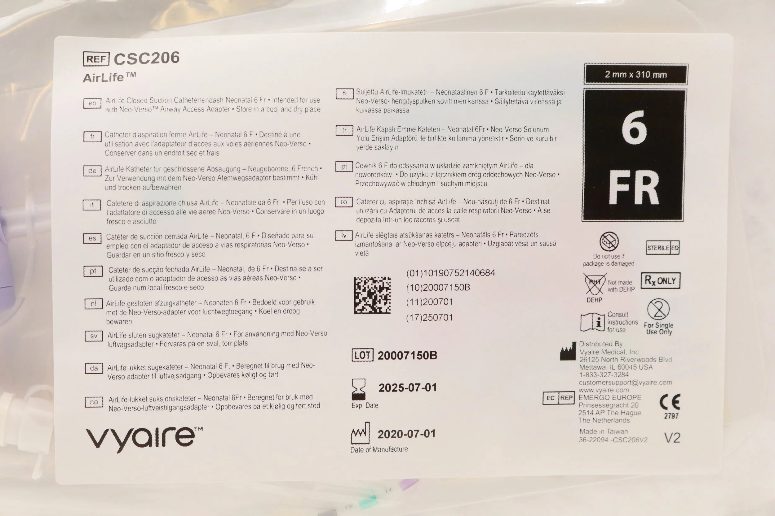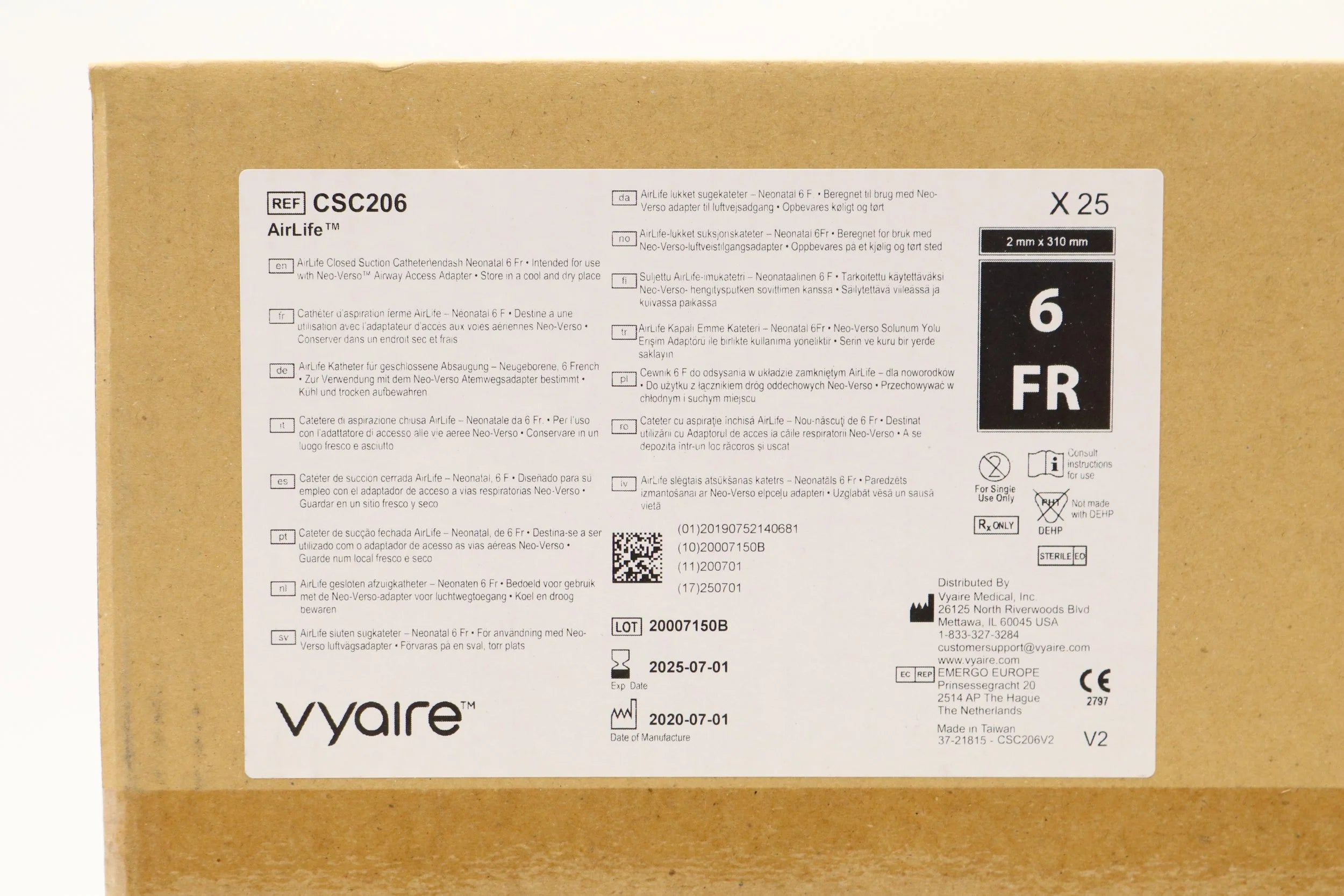Vyaire | CSC206 | SHORT DATE | CASE OF 25 | AirLife Closed Suction Catheter, Neonatal, 6F