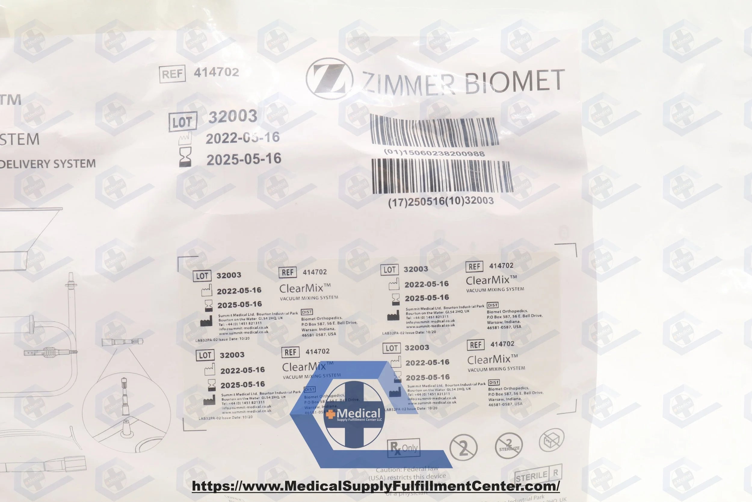Zimmer Biomet | 414702 | SHORT DATE | EACHES | ClearMix Vacuum Mixing Cartridge - ClearMix Single / Double Vacuum Mixing Cartridge