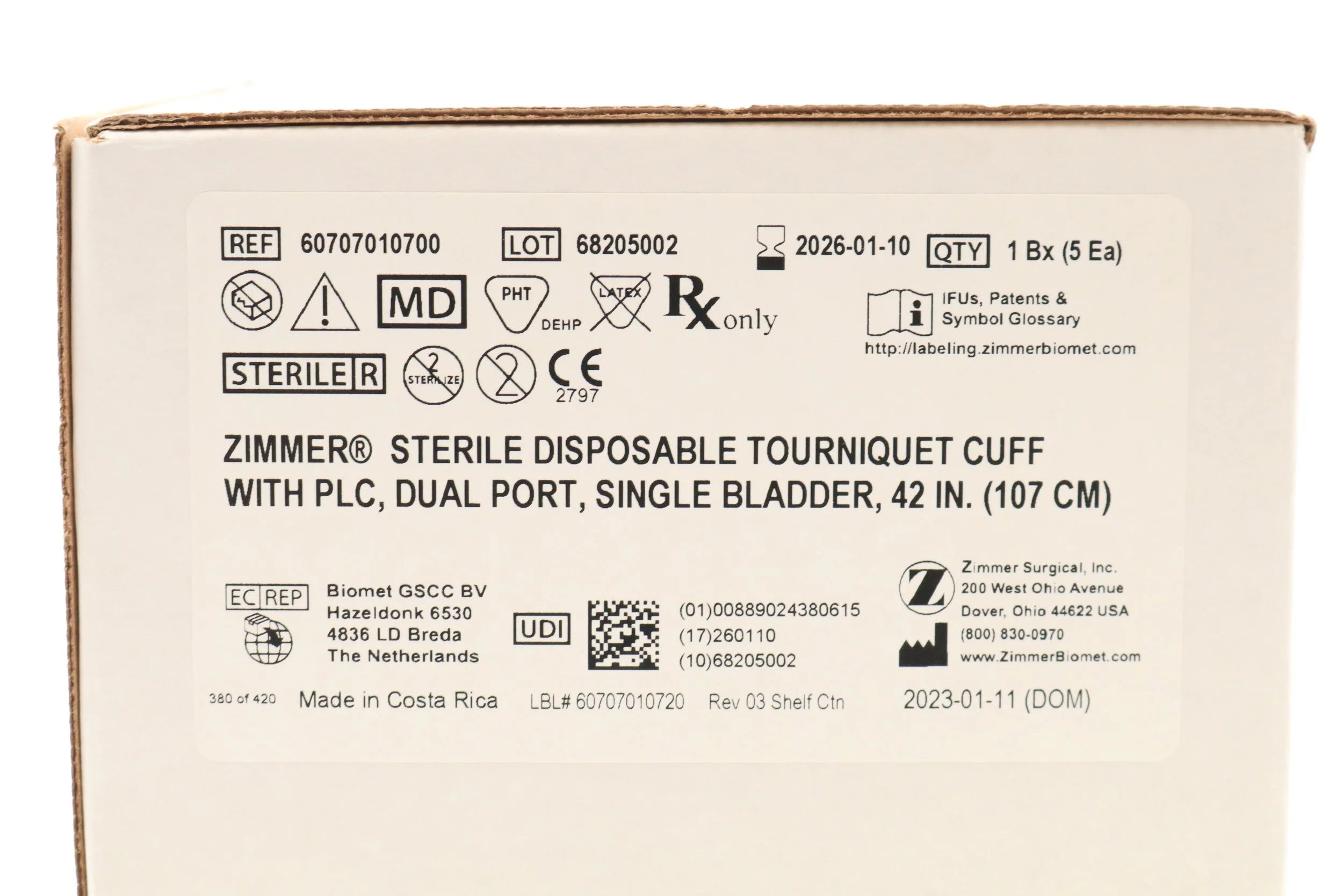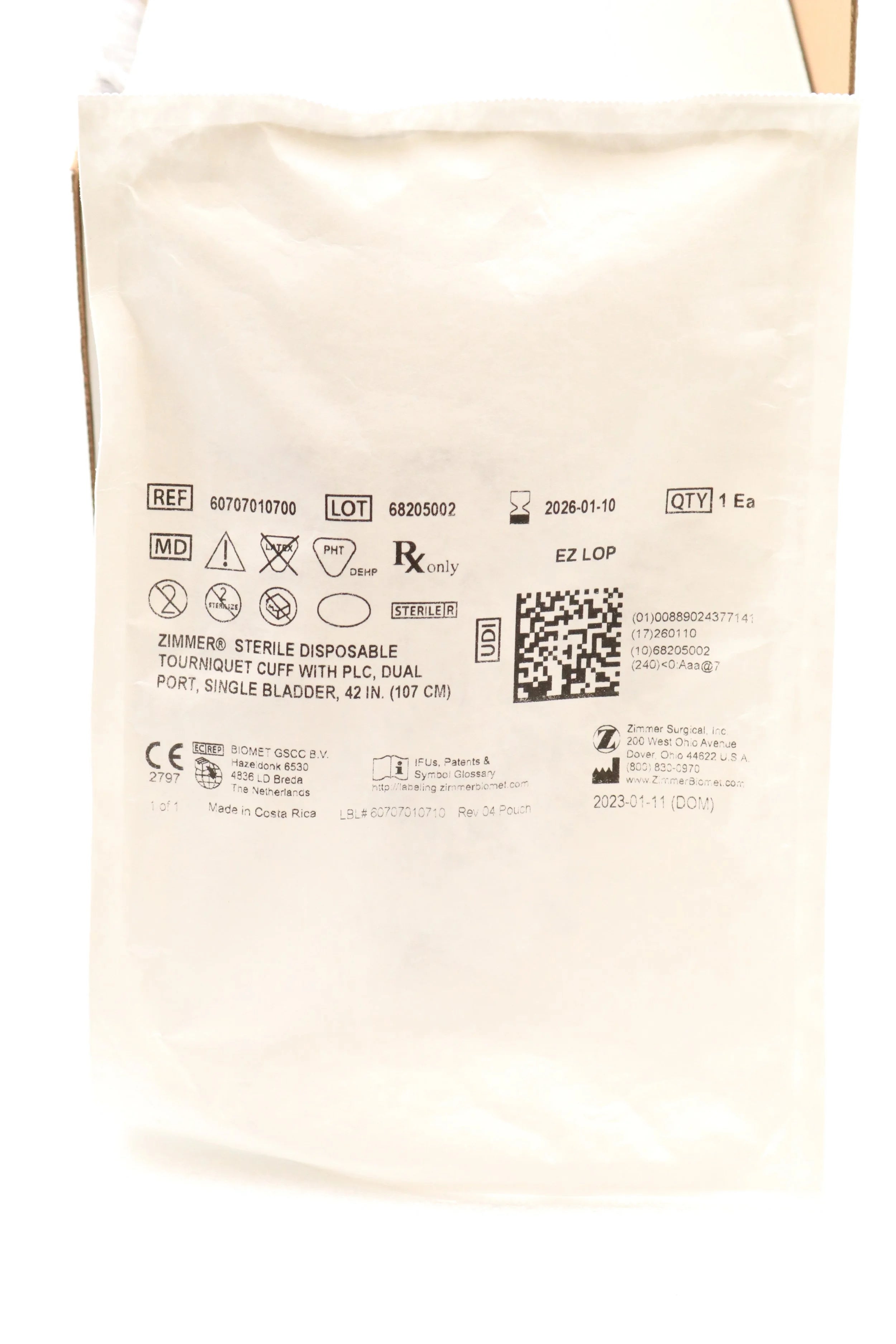 Zimmer | 60707010700 | SHORT DATE | BOX OF 5 | 42" Tourniquet Cuff w/o Sleeve, Dual Port, Single Bladder, PLC