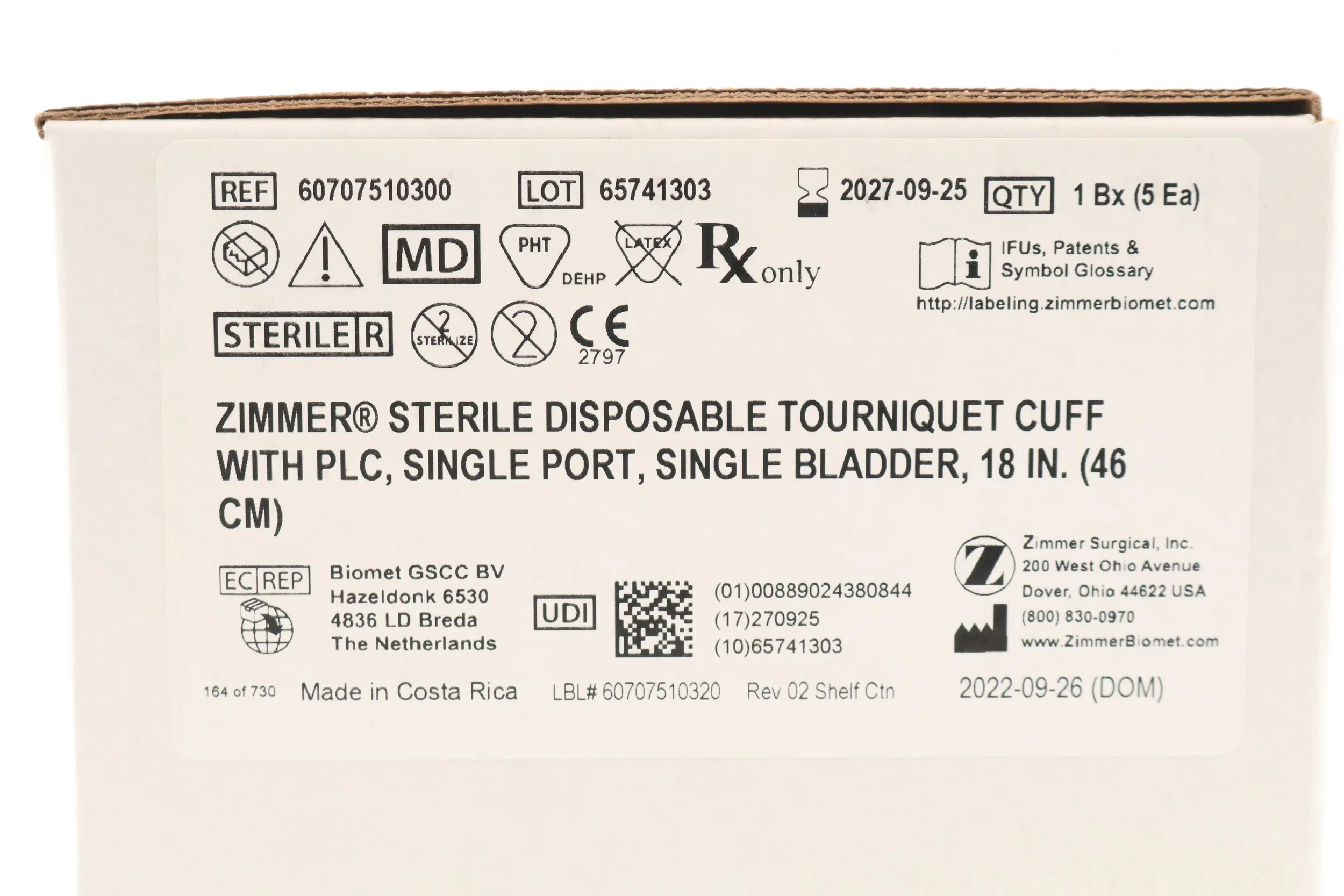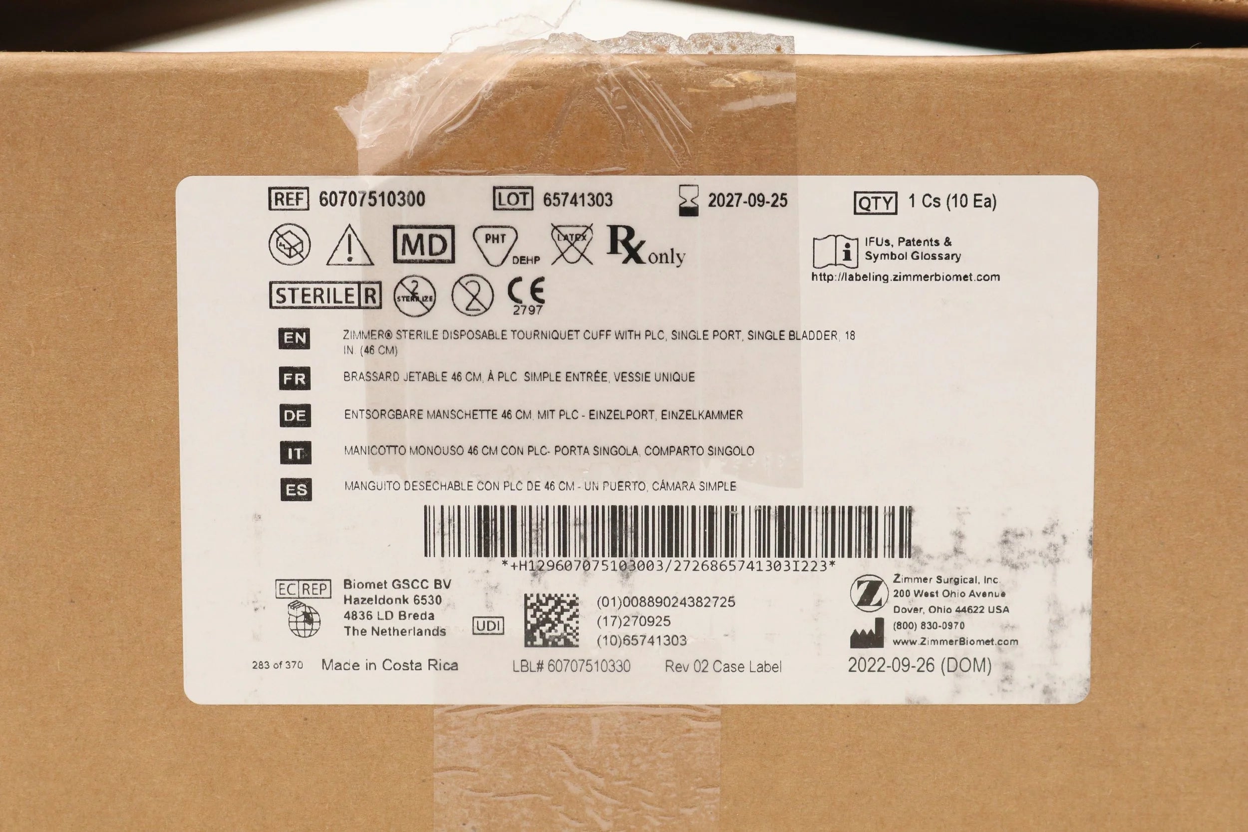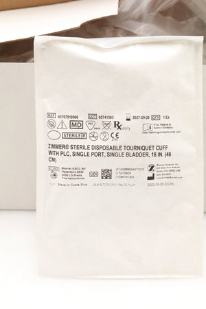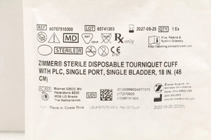 Zimmer | 60707510300 | IN-DATE | CASE OF 10 | 18" Tourniquet Cuff w/o Sleeve, Single Port, Single Bladder, PLC