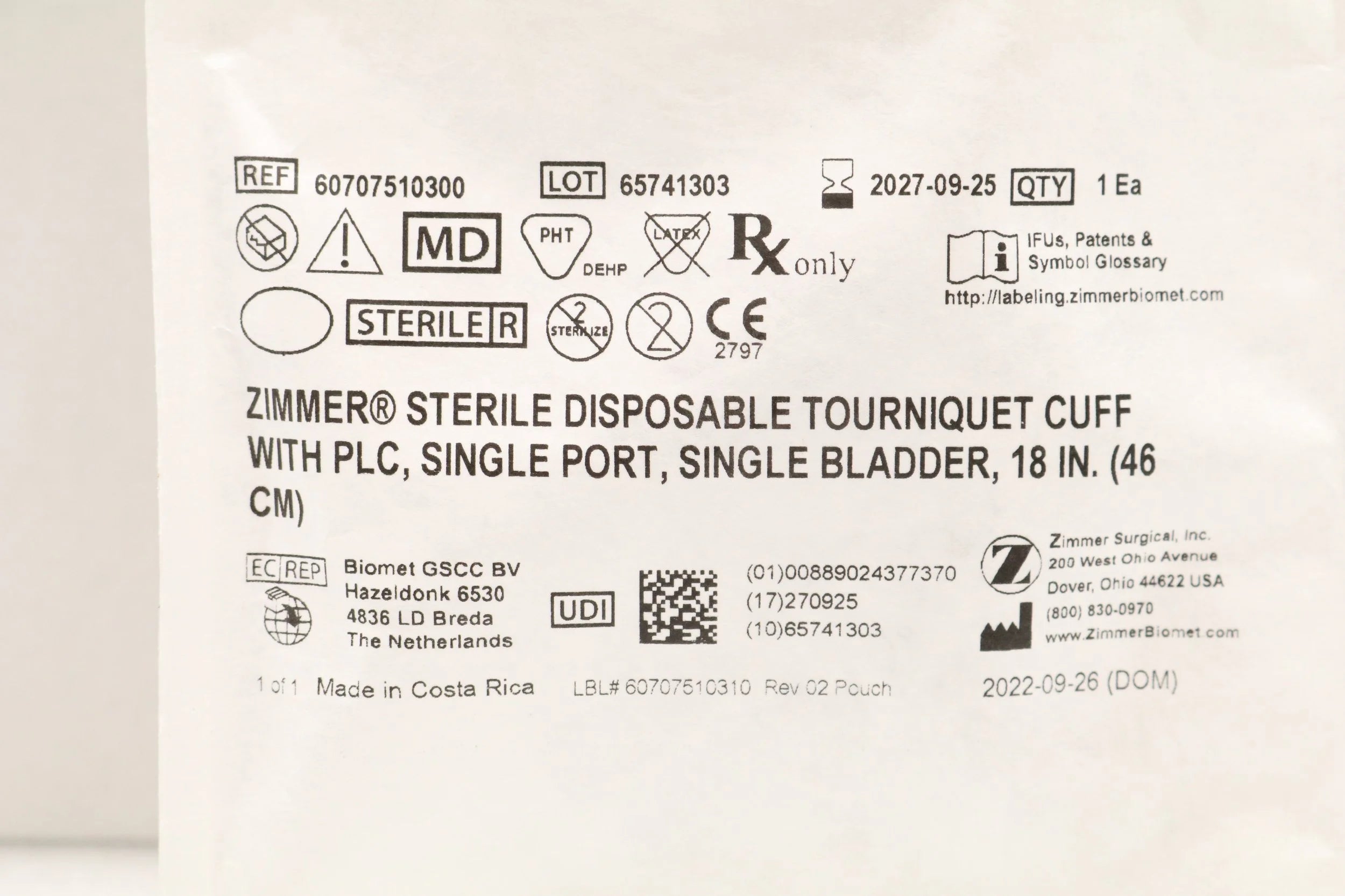 Zimmer Biomet | 60707510300 | 18" Tourniquet Cuff w/o Sleeve, Single Port, Single Bladder, PLC